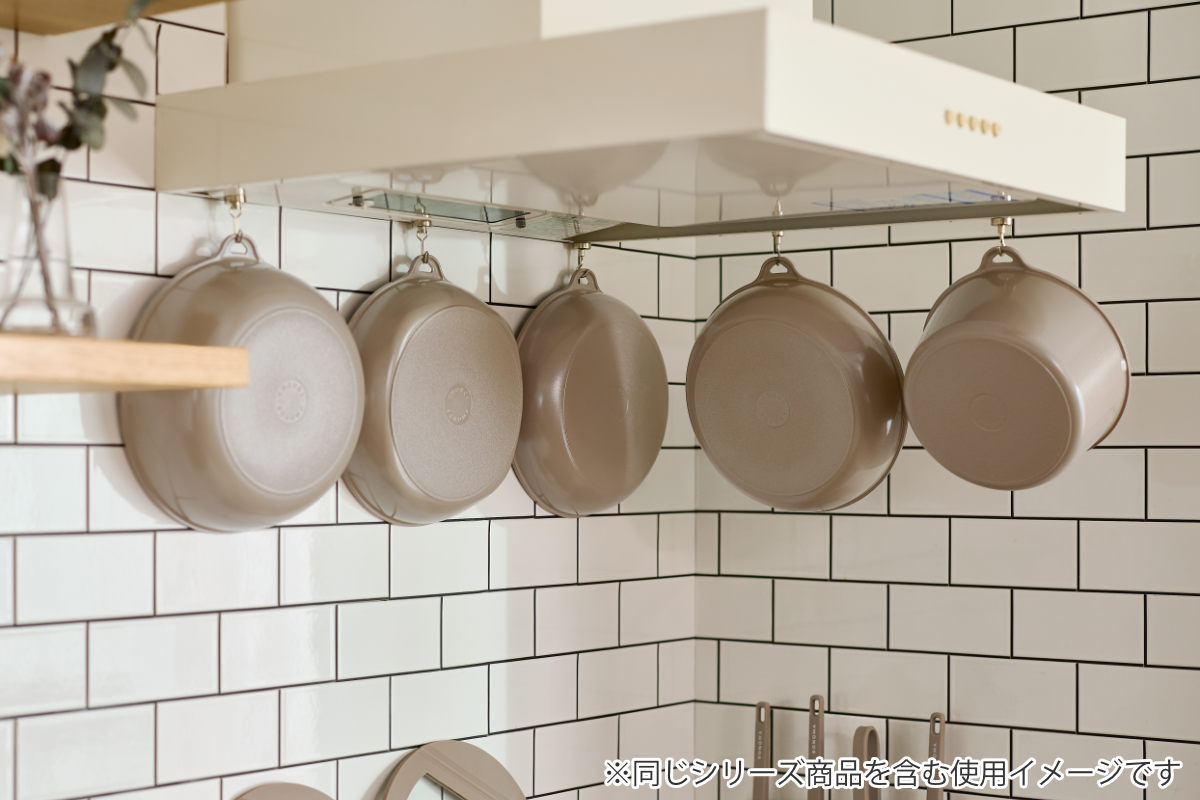 そのまま食卓へ、食洗機へ。フライパンや鍋をそのまま掛けたり、蓋をしたり。ツールやミトンもそのままくっつけて使えるなど、『そのまま○○できる』をコンセプトに開発されたシリーズです。日常の動作がよりスムーズで心地よくなるよう設計されています。