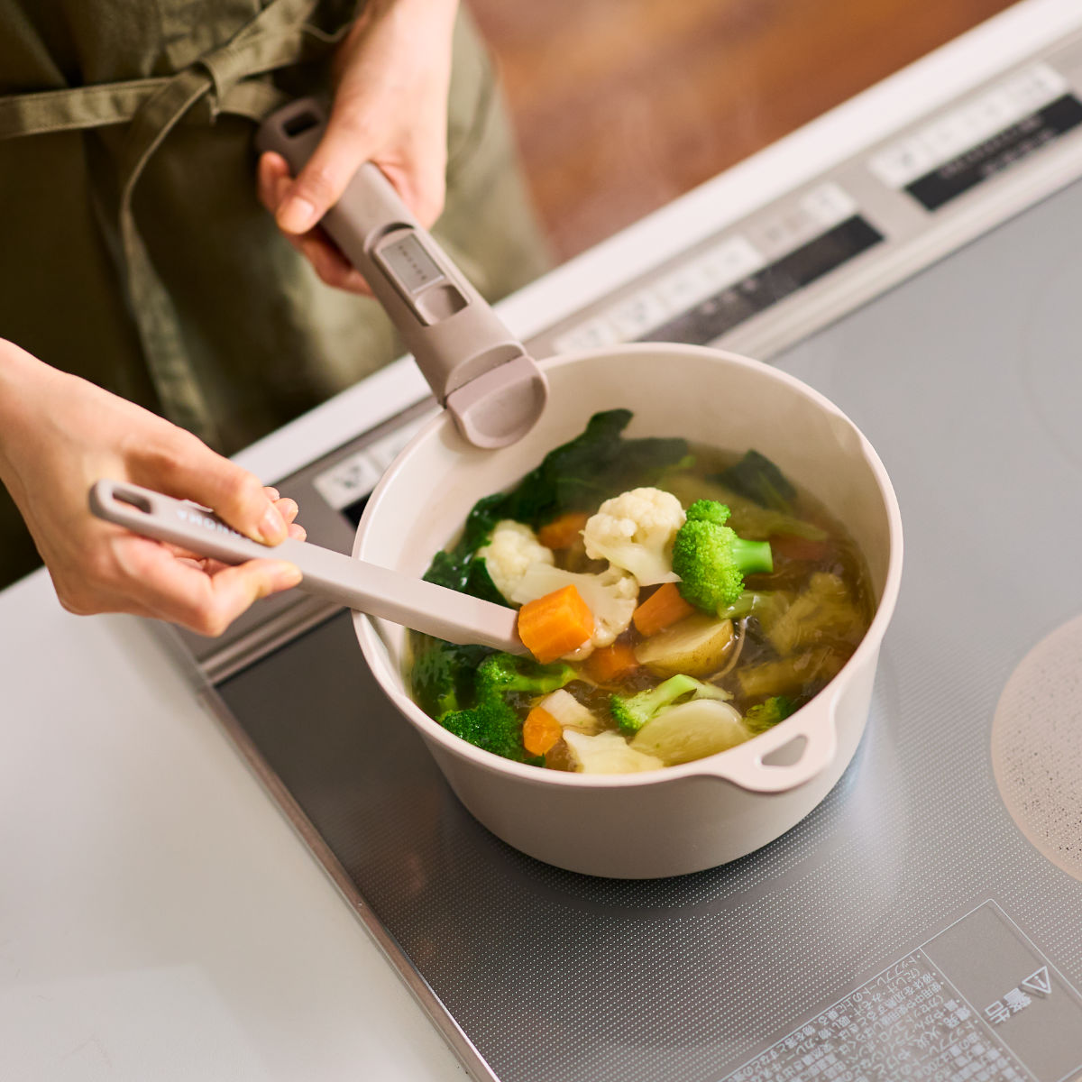 ハンドルを取り外せば重ねて収納できるため、キッチンのスペースを有効に使えます。食洗機に対応しているので、お手入れも簡単です。