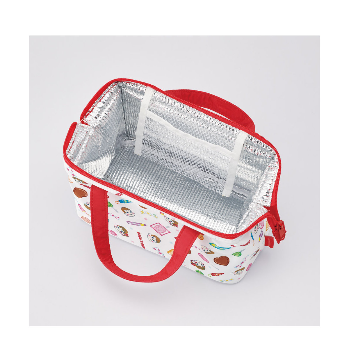 内側はアルミ蒸着素材で保冷バッグとしてお使いいただけます。また、メッシュポケットが内側に付いており、保冷剤入れとしても使えるほか、小物やお菓子などの小さなものを入れておくのに便利です。