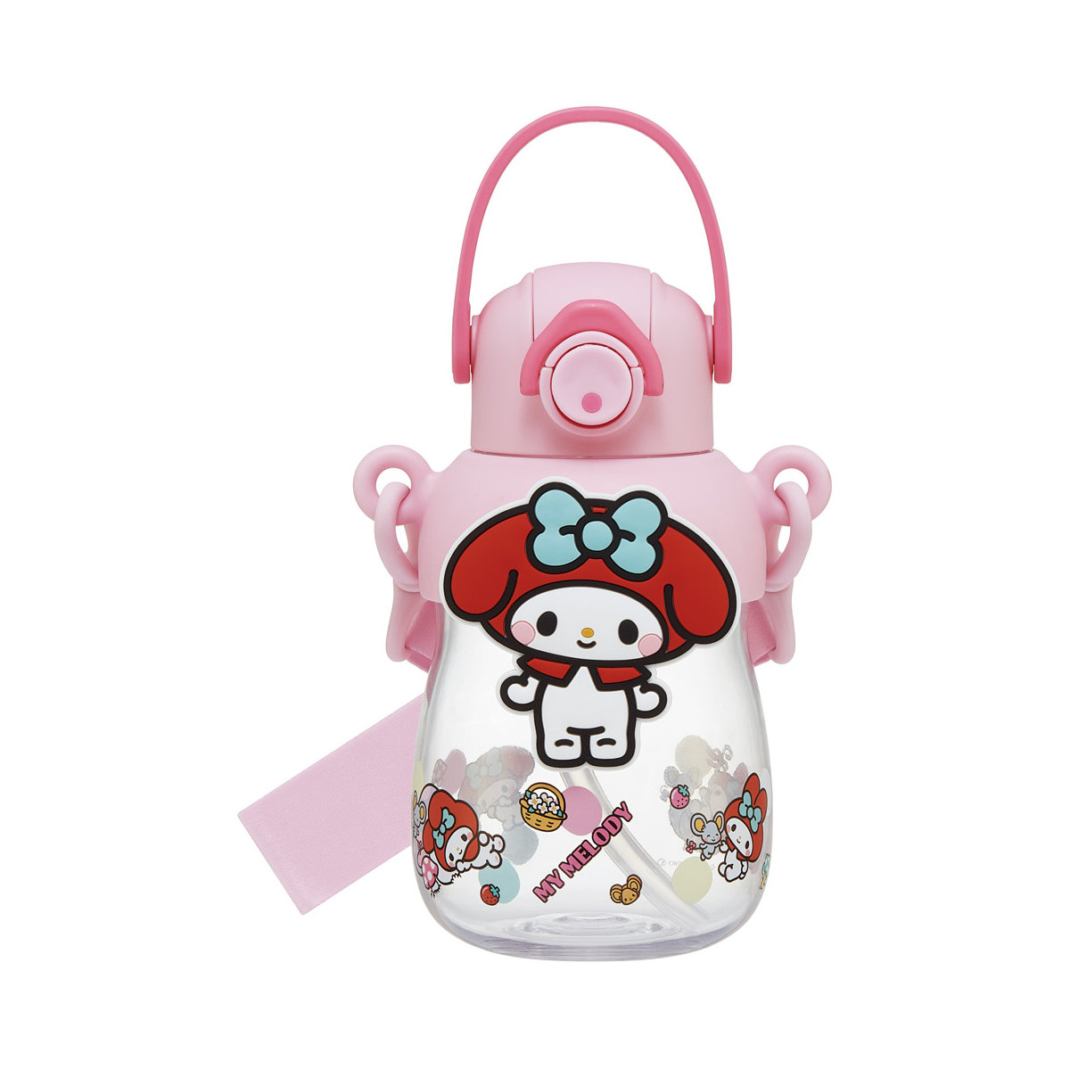 ワンプッシュで飲めるラバーマスコット付きストローボトル