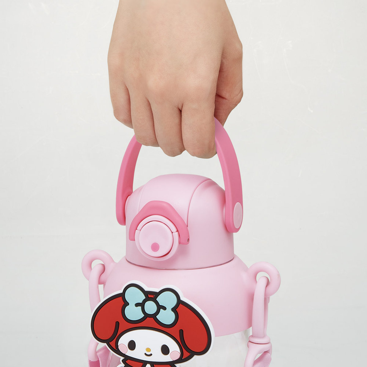 | 材質 | 本体・キャップ・ボタン・ロック:飽和ポリエステル樹脂 本体カバー:ポリプロピレン 持ち手:熱可塑性エラストマー 持ち手留め具:ABS樹脂 飲み口・ストロー・パッキン・マスコット:シリコーンゴム ベルト留め具:ナイロン ベルト:ポリエステル バネ:ステンレス鋼 |