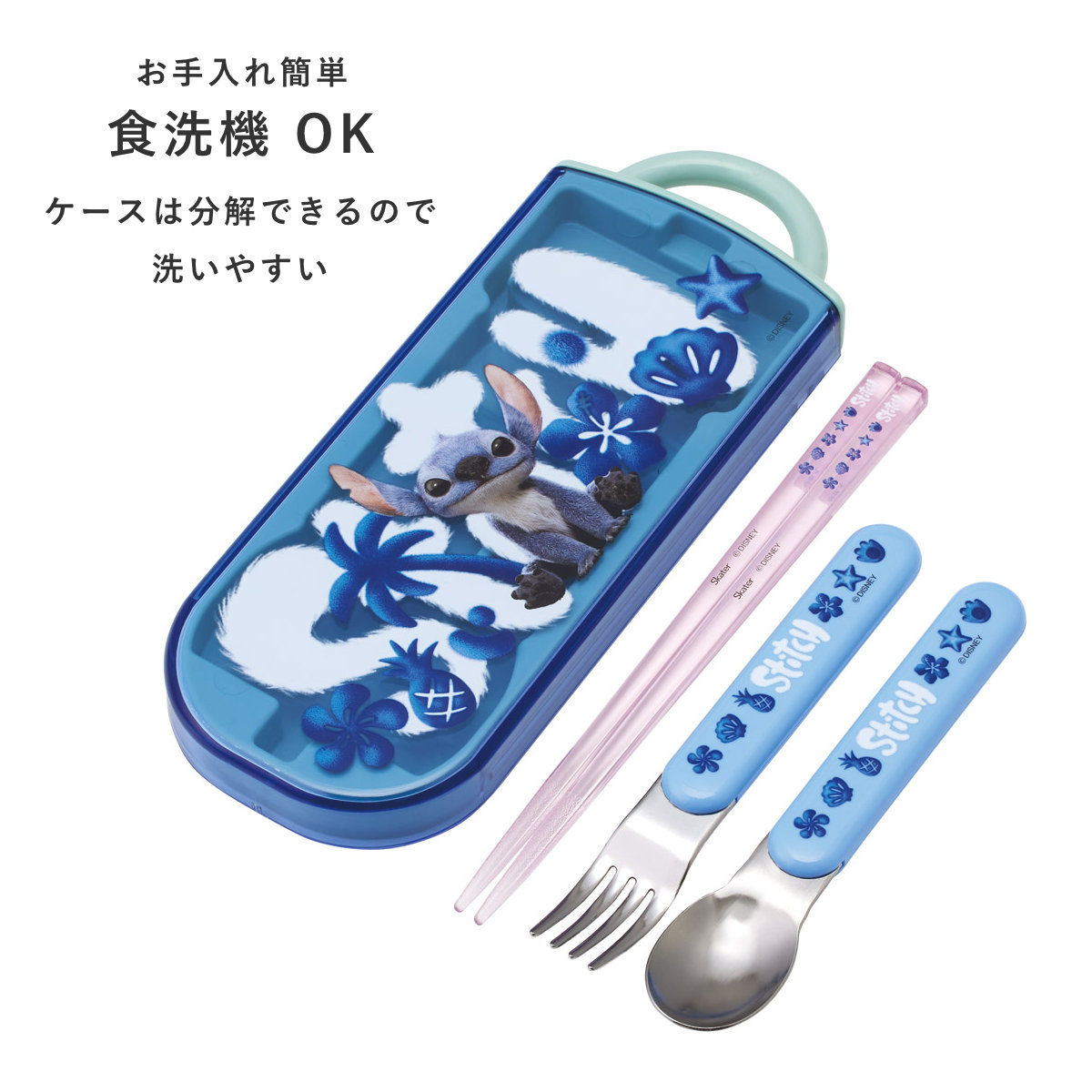 スプーン・フォーク・お箸・ケース全体に抗菌加工が施されています。直接口に触れるので、抗菌加工は嬉しいポイントです。お子様も安心してお使いいただけます。