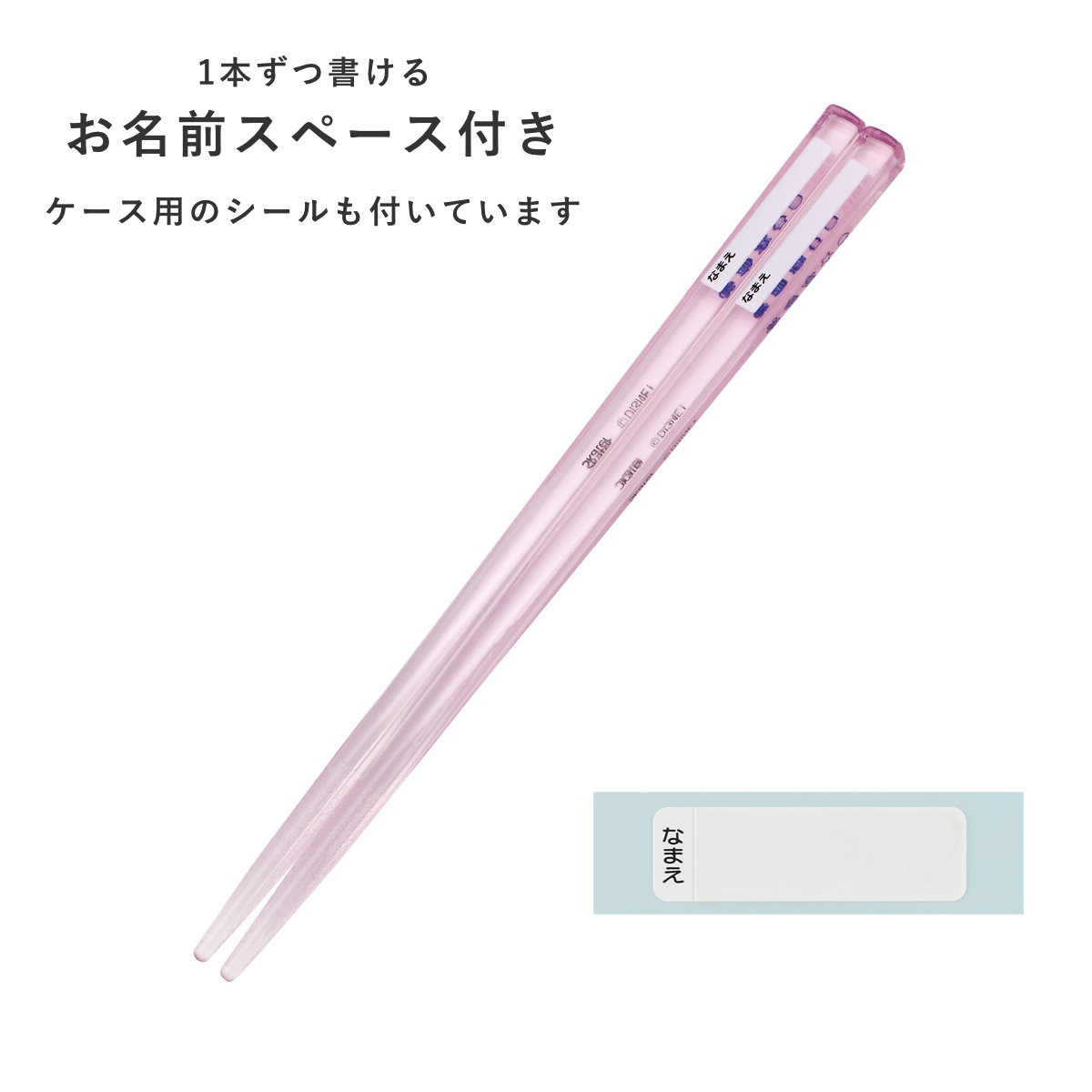 お箸には1本ずつ名前を書き込める名前スペースがあります。ケース用のシールも付いています。