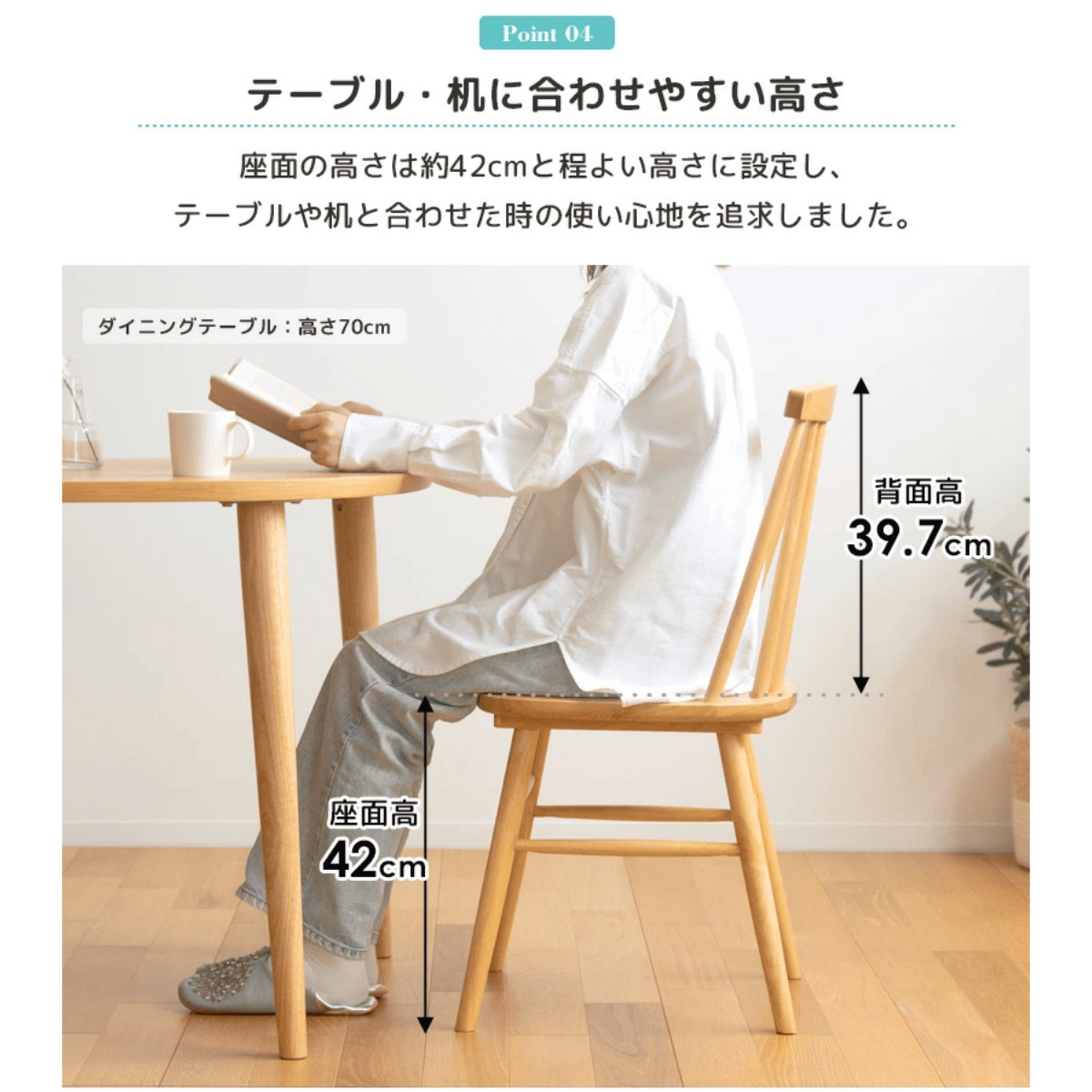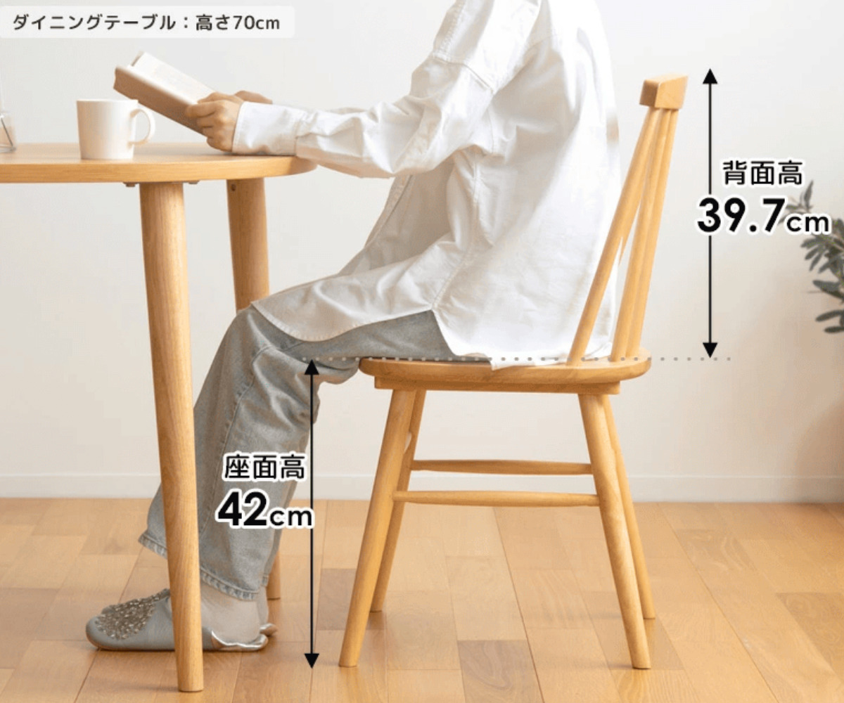 座面の高さ42cmと、ダイニングテーブルやデスクにぴったりの高さ。テーブルや机と合わせた時の使い心地にこだわりました。軽量(約5kg)で移動も楽々です。