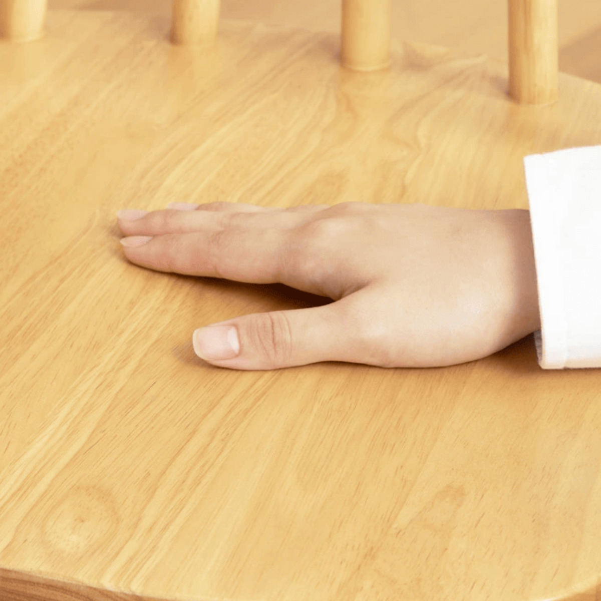 本体には天然木ラバーウッドを使用。座面は、厚さ約2.5cmとしっかりした作りです。