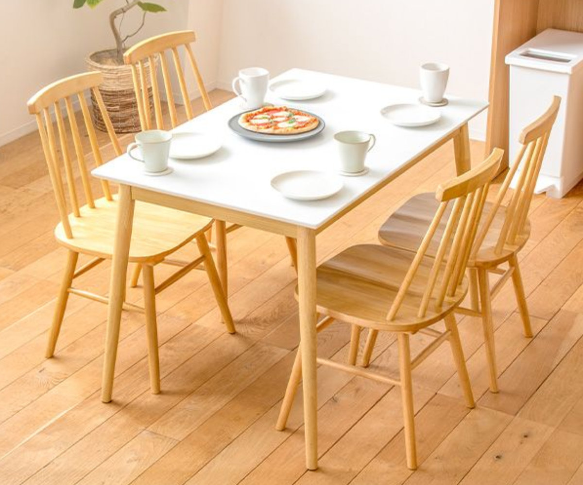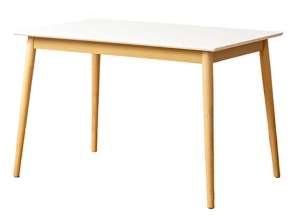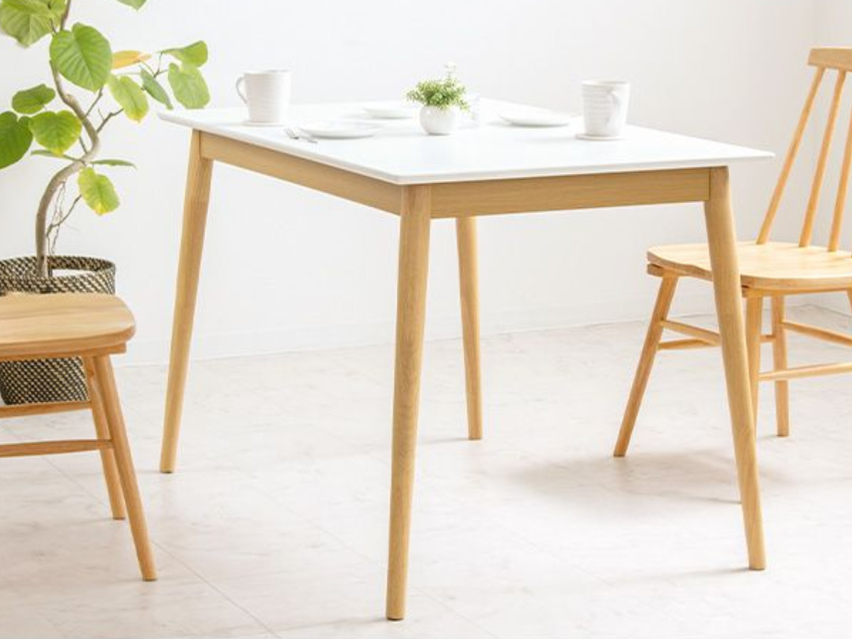 清潔感のある白い天板と、ナチュラルカラーの天然木脚が美しい、ツートンダイニングテーブルです。北欧風やナチュラルモダンなど、多彩なインテリアに調和し、毎日の食卓を明るく彩ります。
