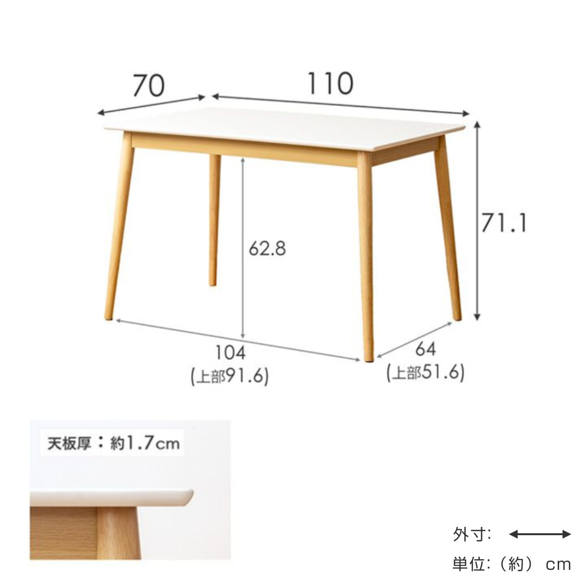 | サイズ | 約 幅110×奥行70×高さ71.1(cm) |