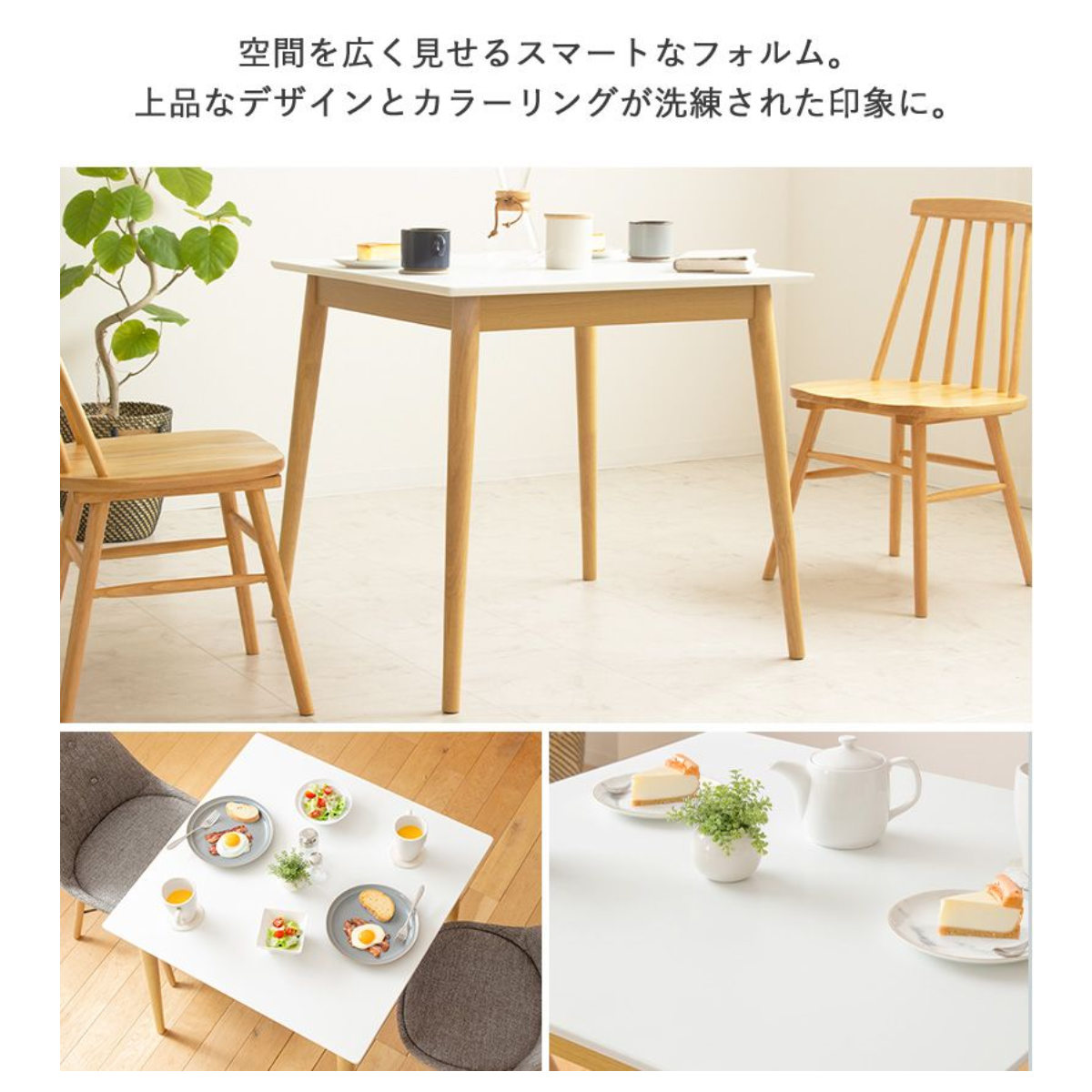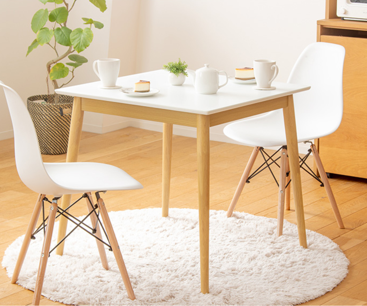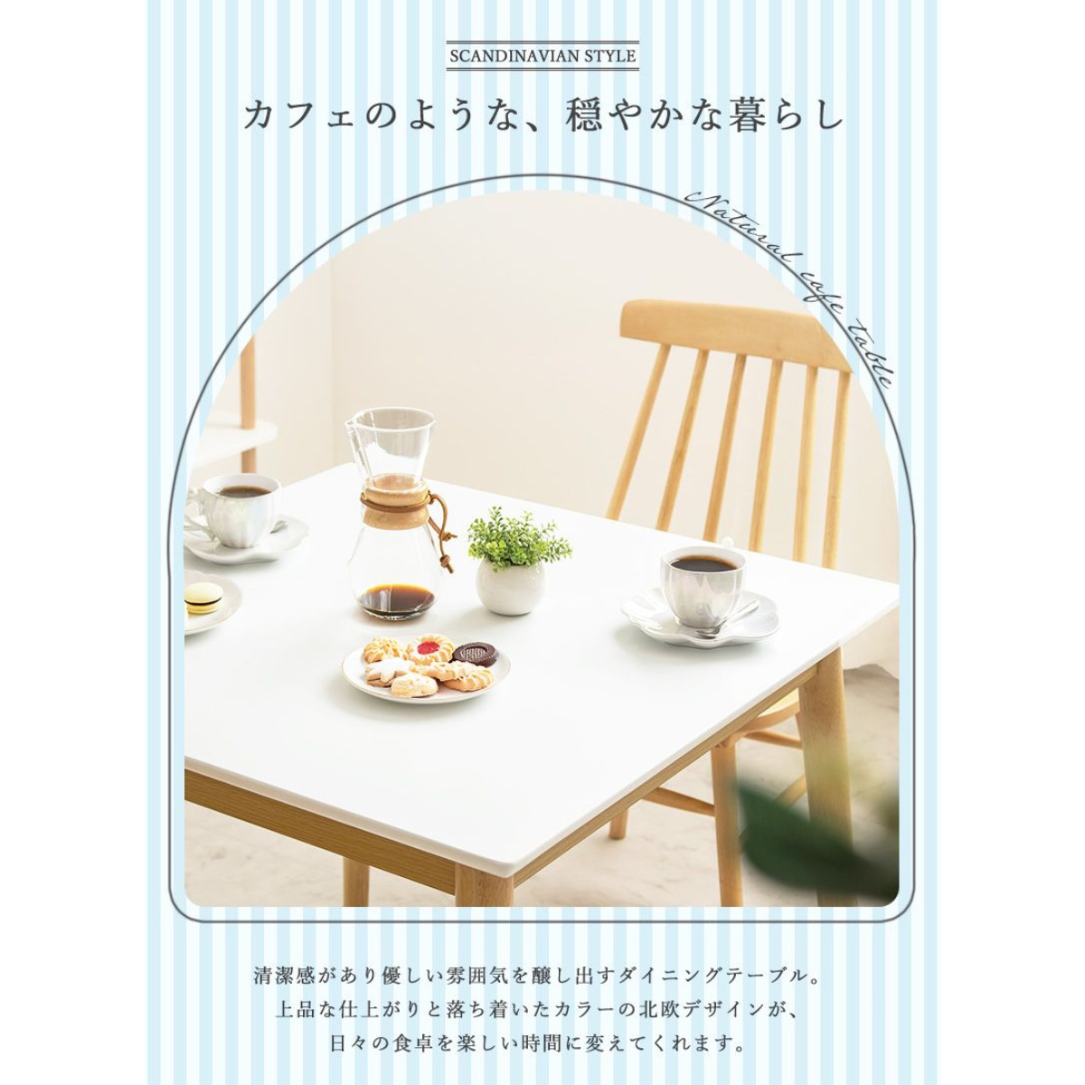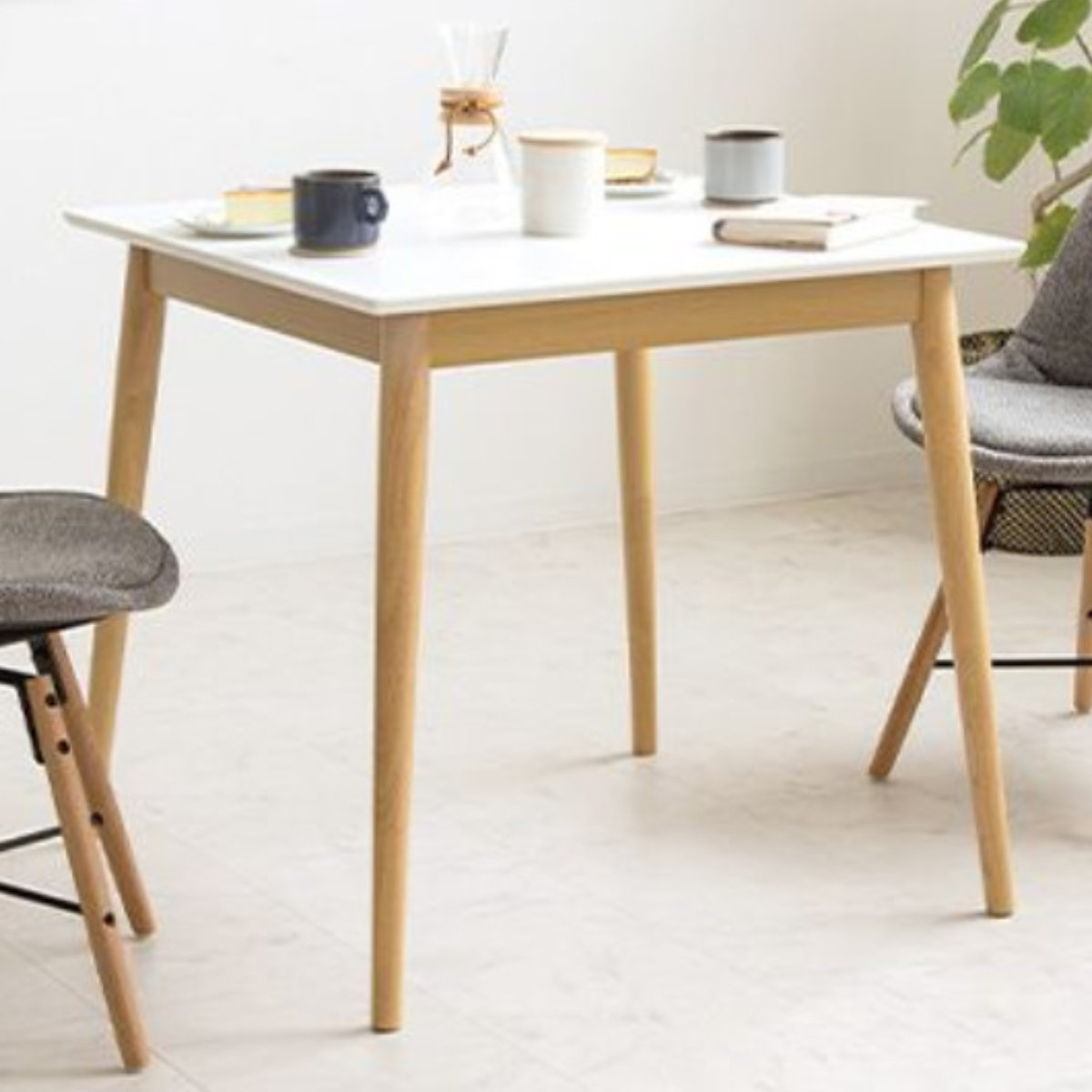 清潔感のある白い天板と、ナチュラルカラーの天然木脚が美しい、ツートンダイニングテーブルです。北欧風やナチュラルモダンなど、多彩なインテリアに調和し、毎日の食卓を明るく彩ります。