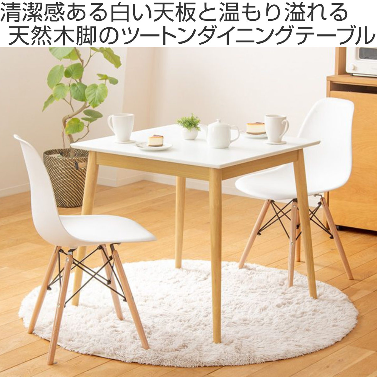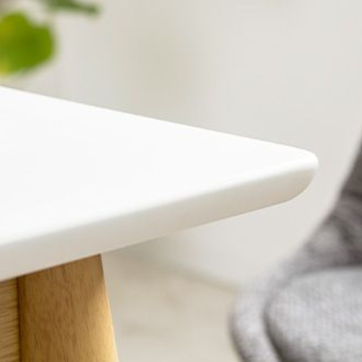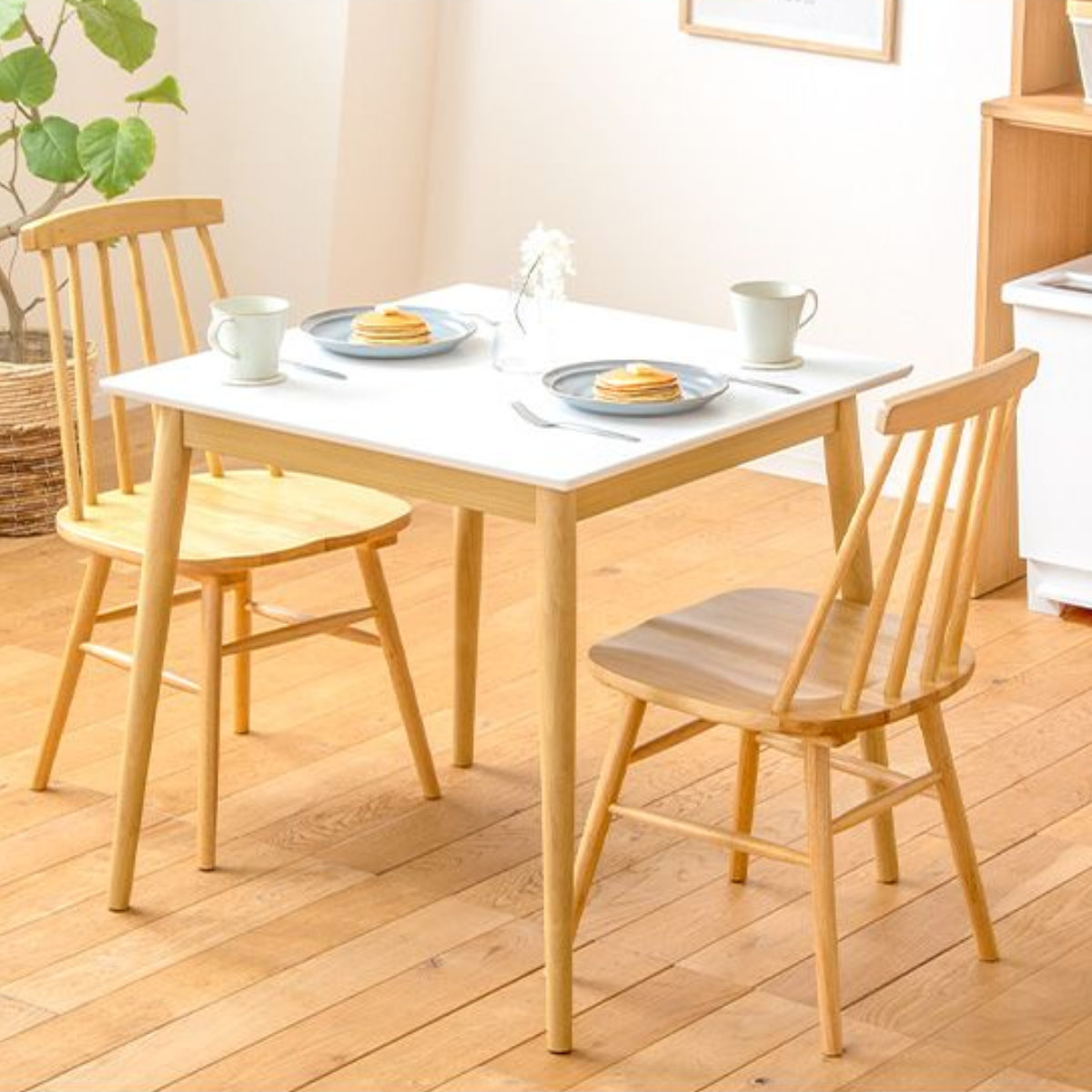 清潔感のある白い天板と、ナチュラルカラーの天然木脚が美しい、ツートンダイニングテーブルです。北欧風やナチュラルモダンなど、多彩なインテリアに調和し、毎日の食卓を明るく彩ります。