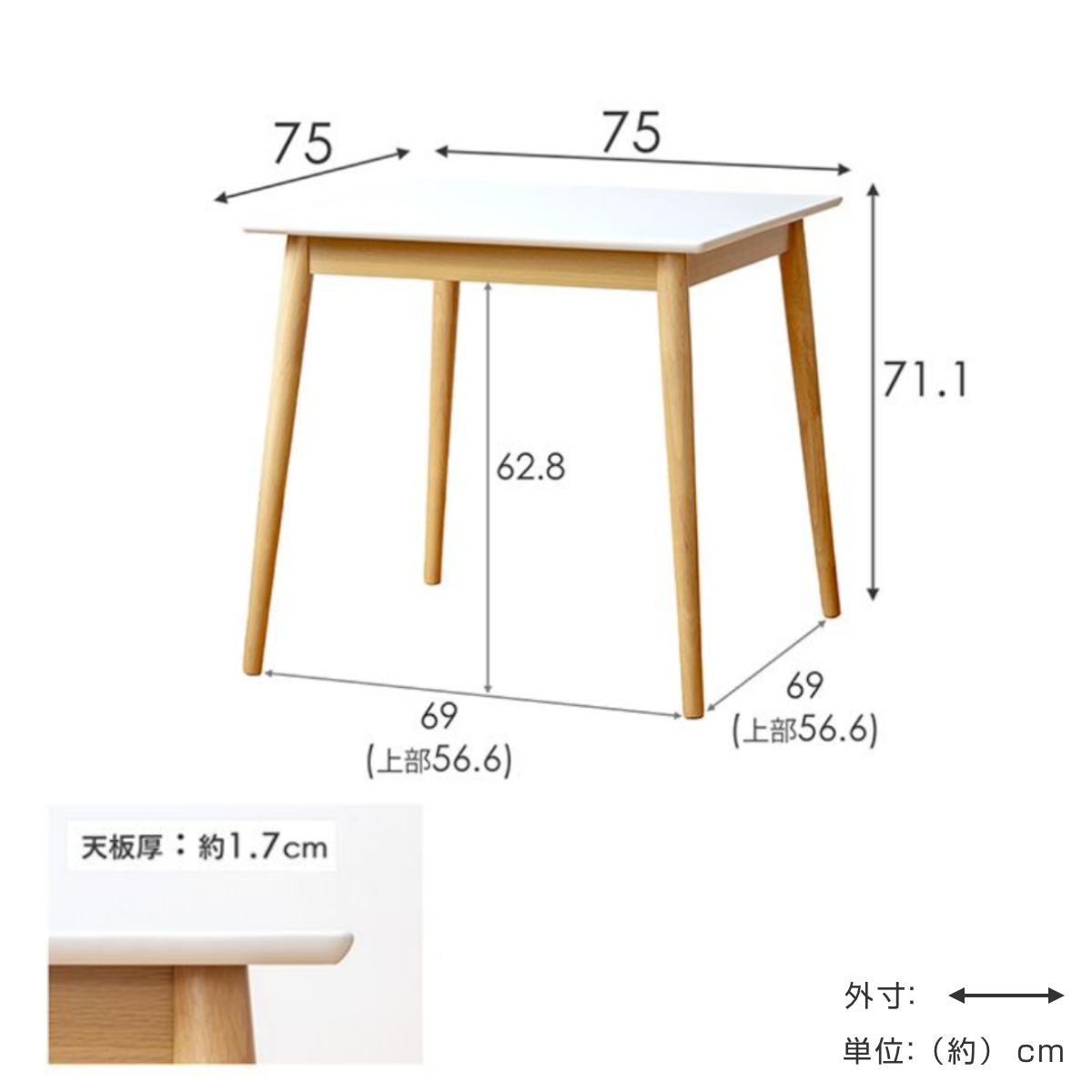明るくナチュラルに彩る、ダイニングテーブル 幅75cm