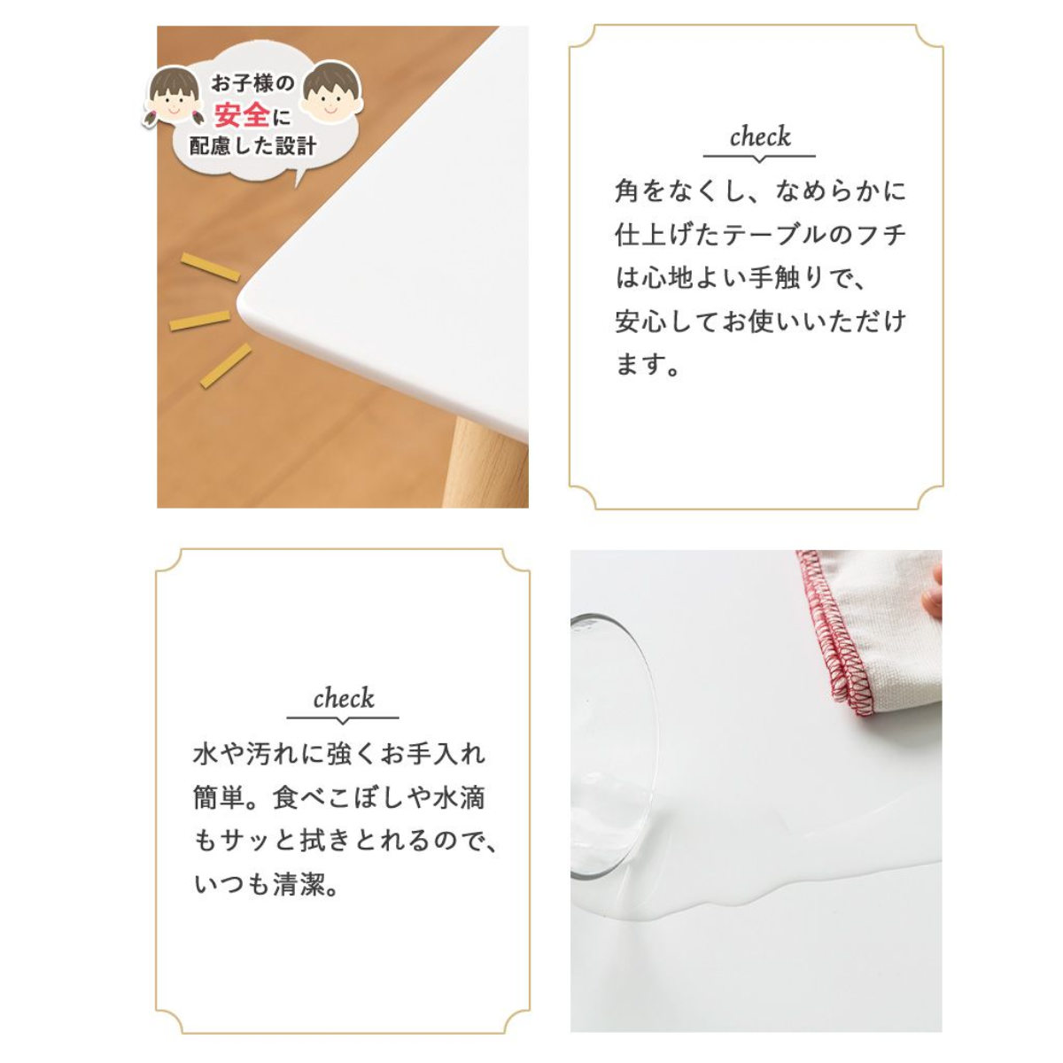 表面には水や汚れに強く、こぼしてもサッと拭き取るだけなので、お手入れが簡単で清潔に使えます。