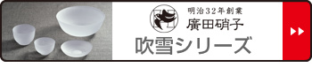 雪が舞い、吹雪くさまをガラスで表現した「吹雪」。1980年から作り続けられ、長年愛されているシリーズです。手びねりの様なやわらかなシルエットとフロスト加工による曇りガラスが、和の食卓にぬくもりを運びます。