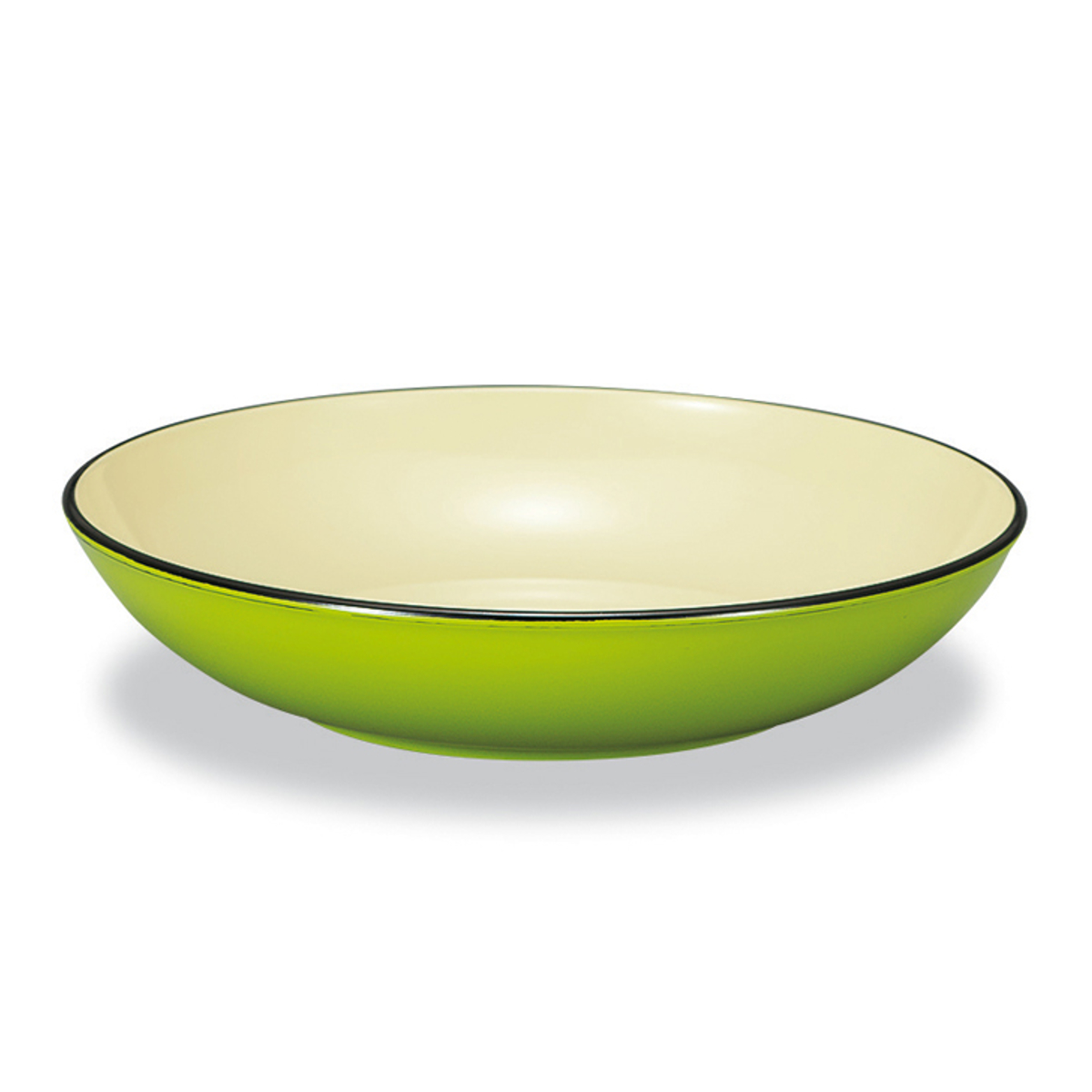 樹脂製で軽くて割れにくい山中塗の深型プレートです。色鮮やかな発色とナチュラルな質感が魅力で、普段使いにぴったり。深めのプレートなので、汁気のある料理も安心です。カレーやシチュー、ワンプレートごはんにも使いやすい24cmサイズです。
