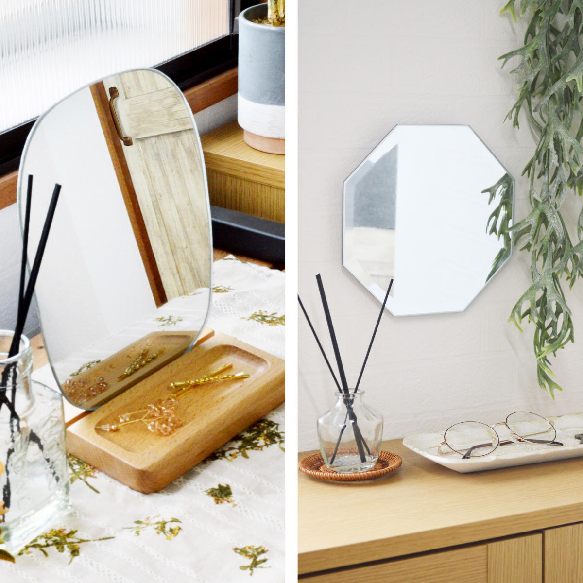 ウェーブ型はやわらかい印象、八角形はスタイリッシュな印象で、飾る場所によっては運気アップにも。どちらもシンプルでお部屋のインテリアに馴染みます。