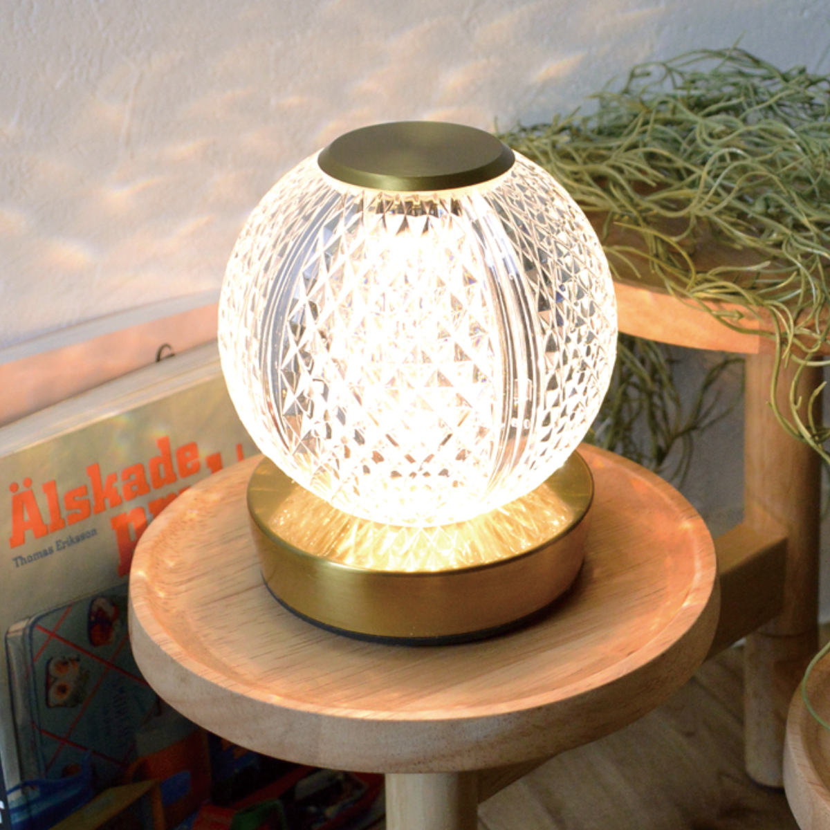 柔らかな光がガラスを通して広がる、LEDを内蔵したランタンです。繊細なカッティングガラスと真鍮風のベースが上品に調和し、韓国風のインテリアやシンプルにまとめたお部屋にもすっと溶け込みます。小ぶりながら存在感があり、置くだけで洗練された雰囲気を演出します。
