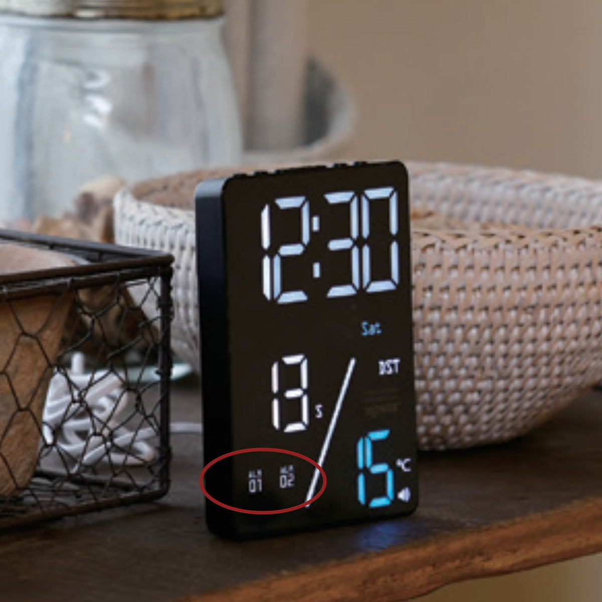 ●朝に嬉しいダブルアラームとスヌーズ機能付きです。