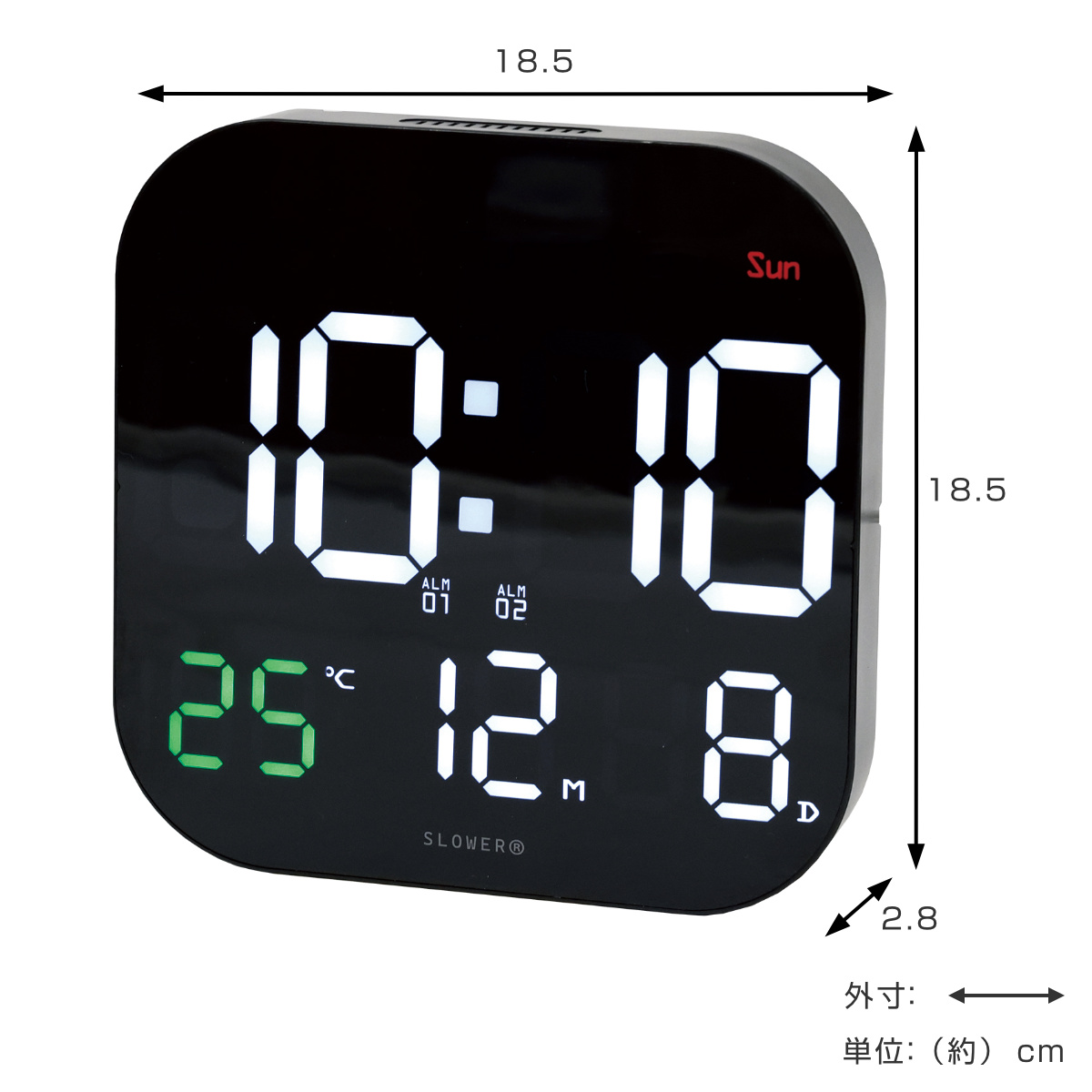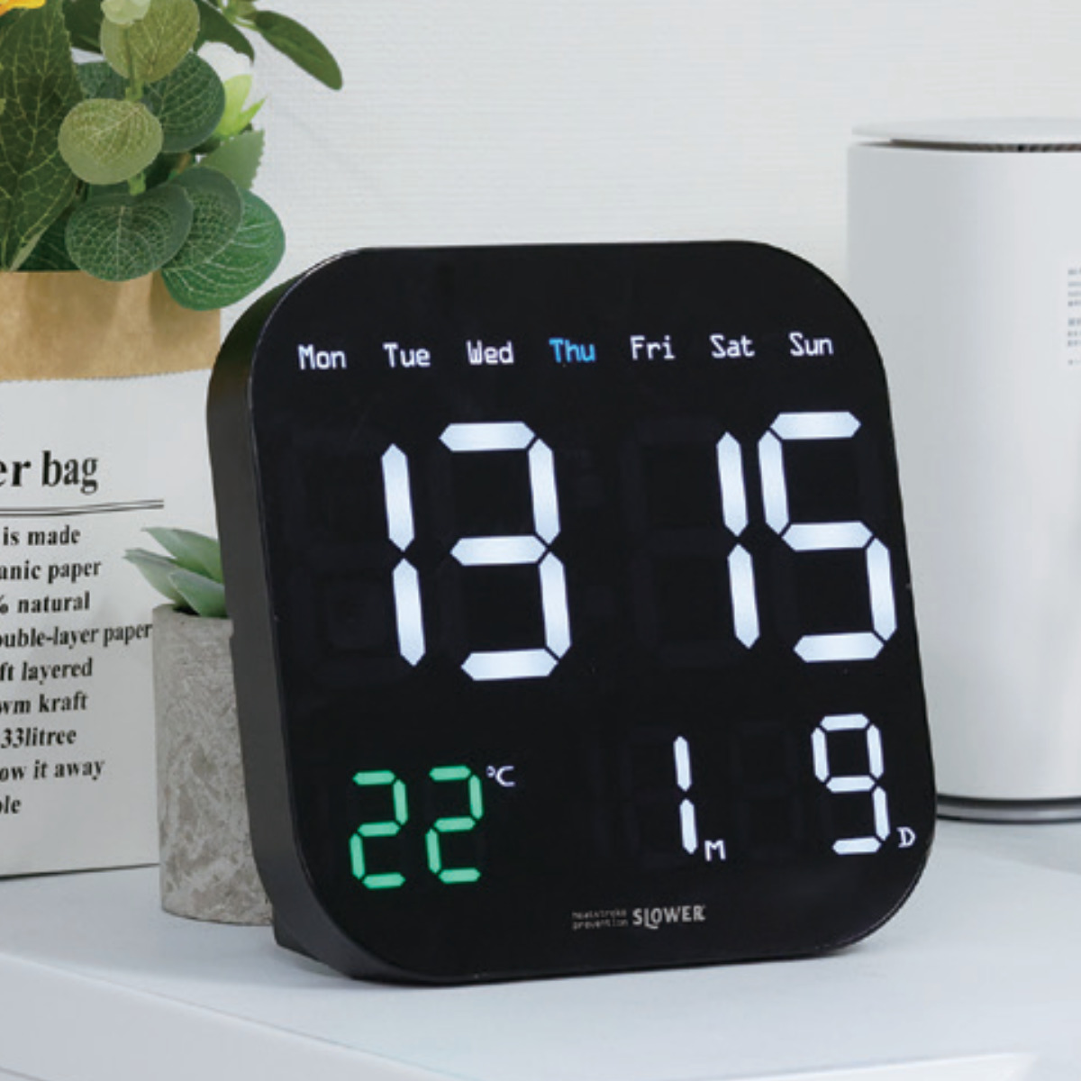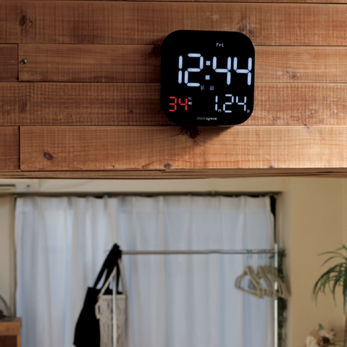 サーモアラート機能のついた大きく見やすい画面のLEDクロック