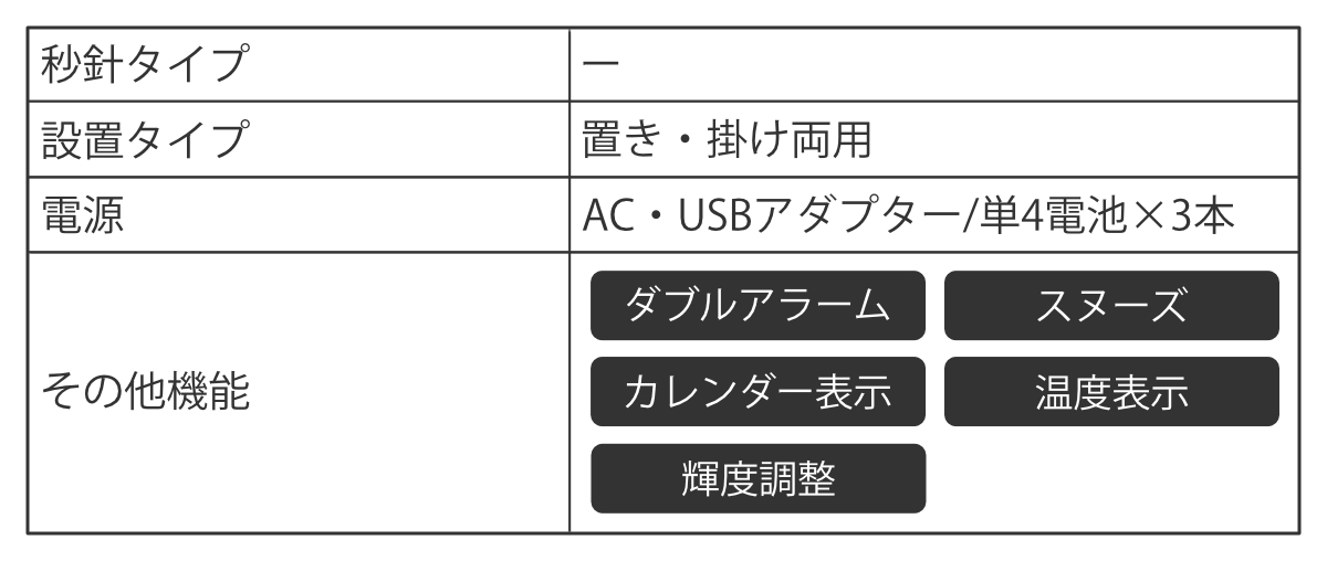 スヌーズ機能を搭載しているため、目覚まし時計としても活躍します。
