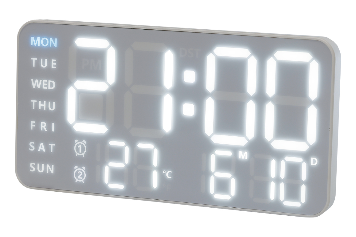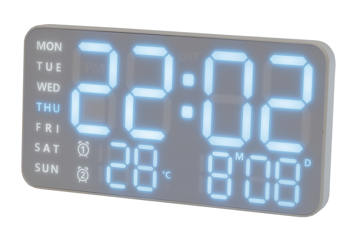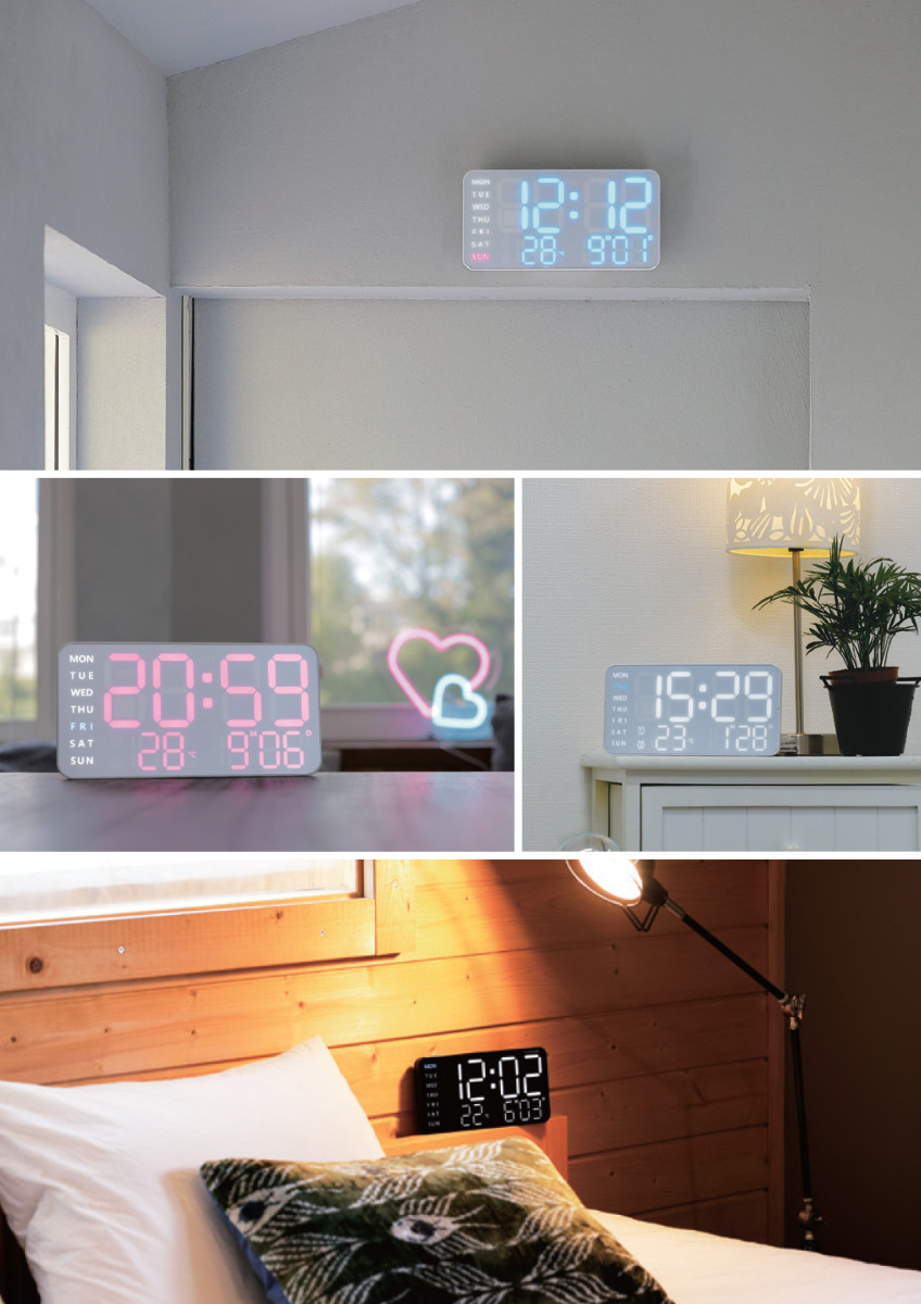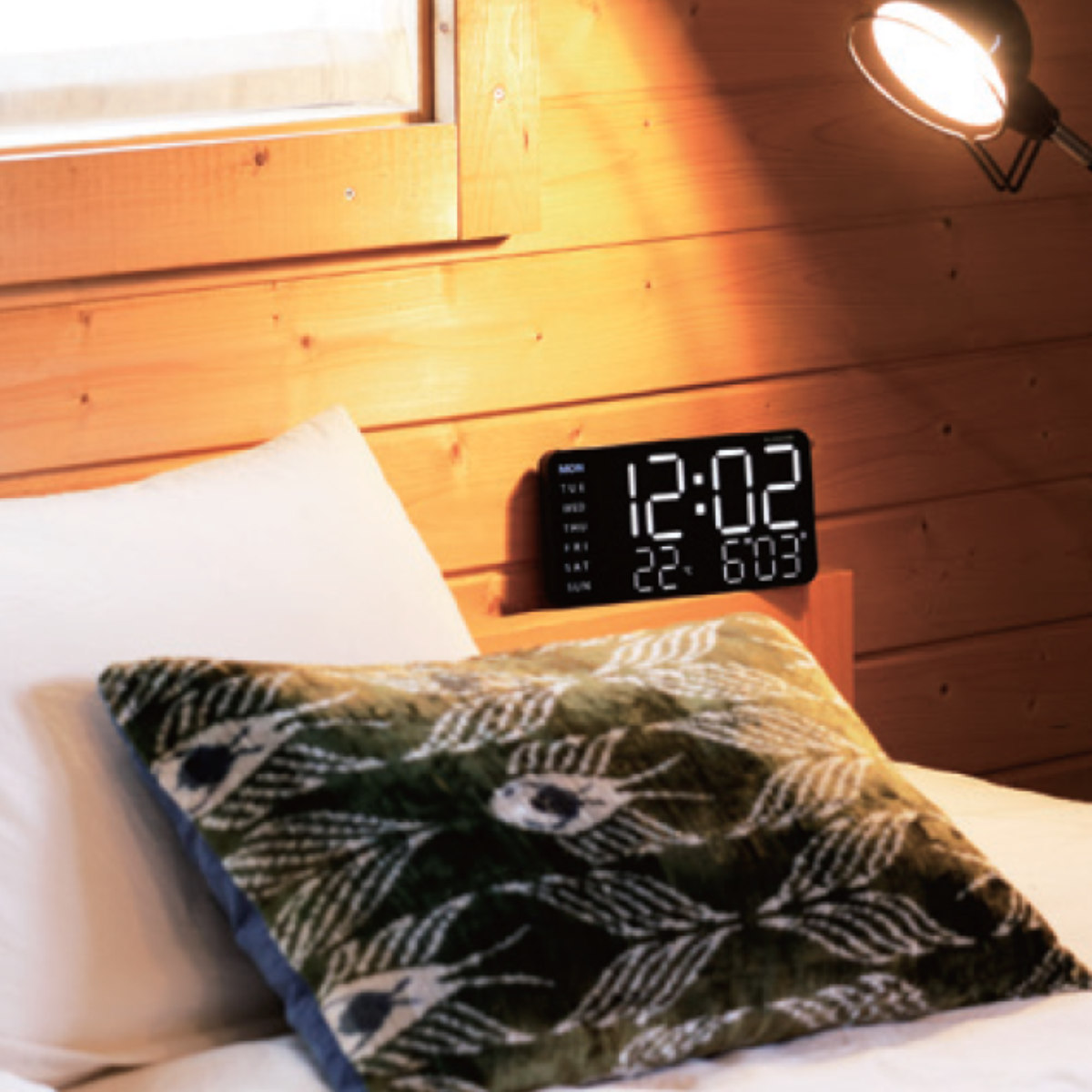 カレンダーや温度表示、アラームなど様々な機能を搭載したLED時計です。小ぶりでありながらディスプレイが大きいので、どこに置いても見やすく使いやすいです。