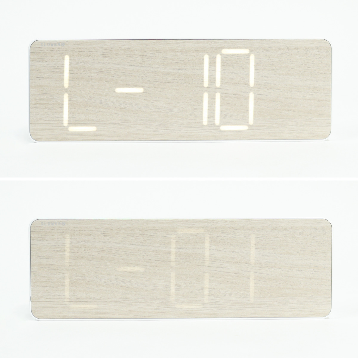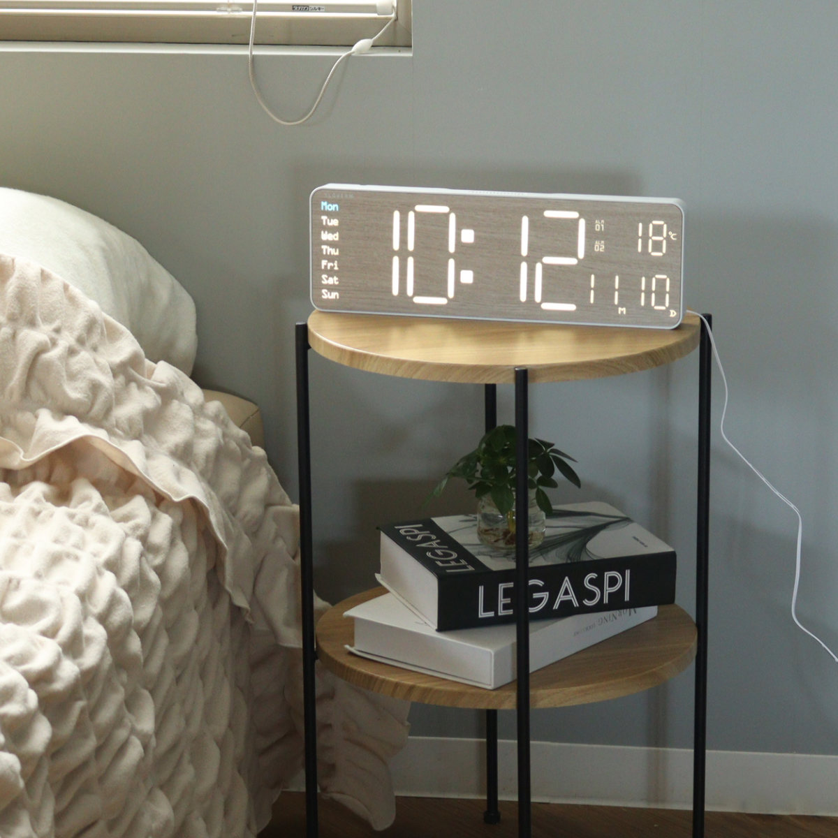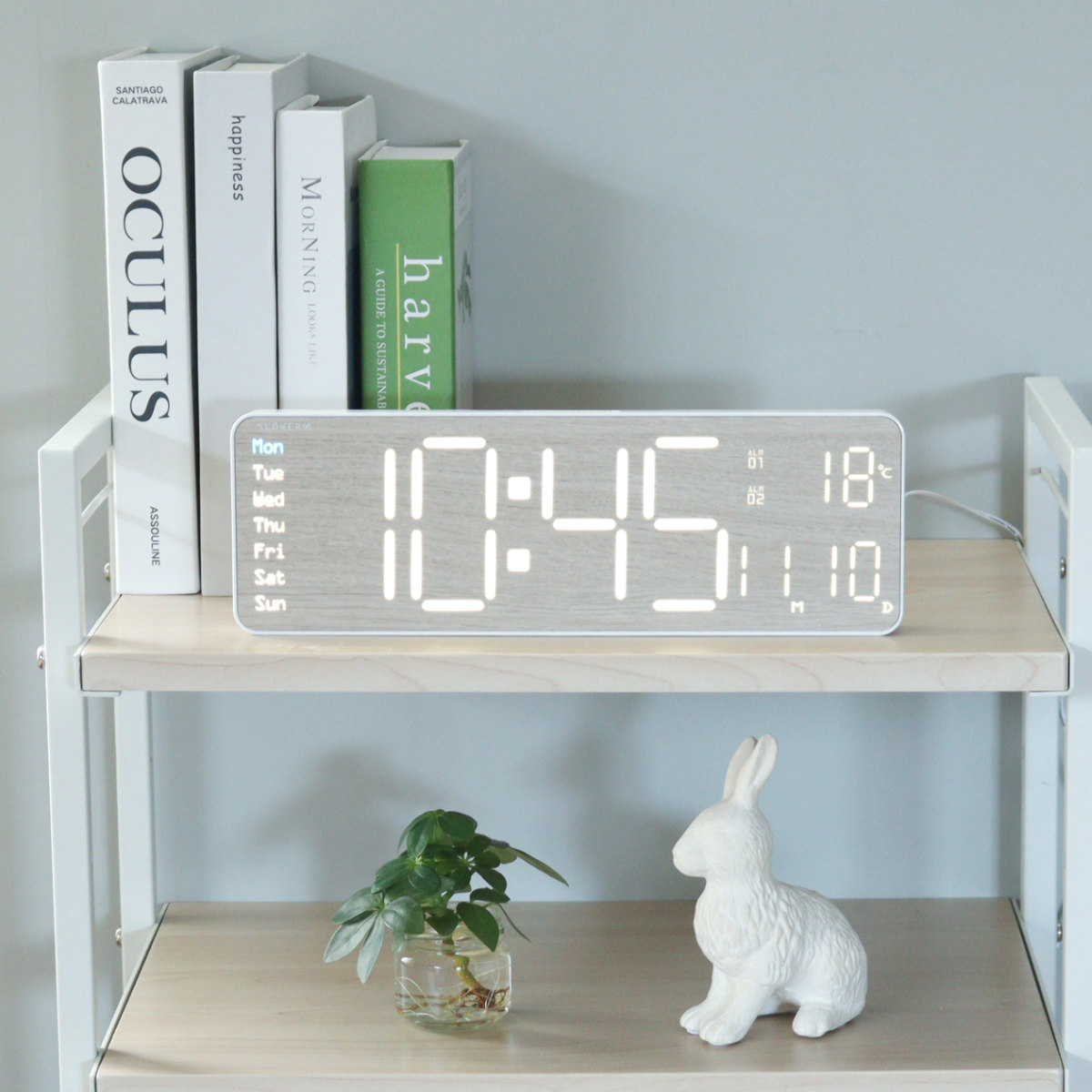 スリムなフォルムと大きな画面表示が特徴のデジタル時計です。時間、日付、温度が部屋のどこからでも見やすく、快適にお使いいただけます。