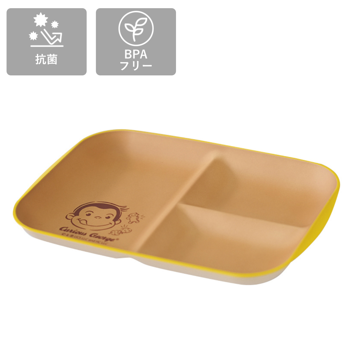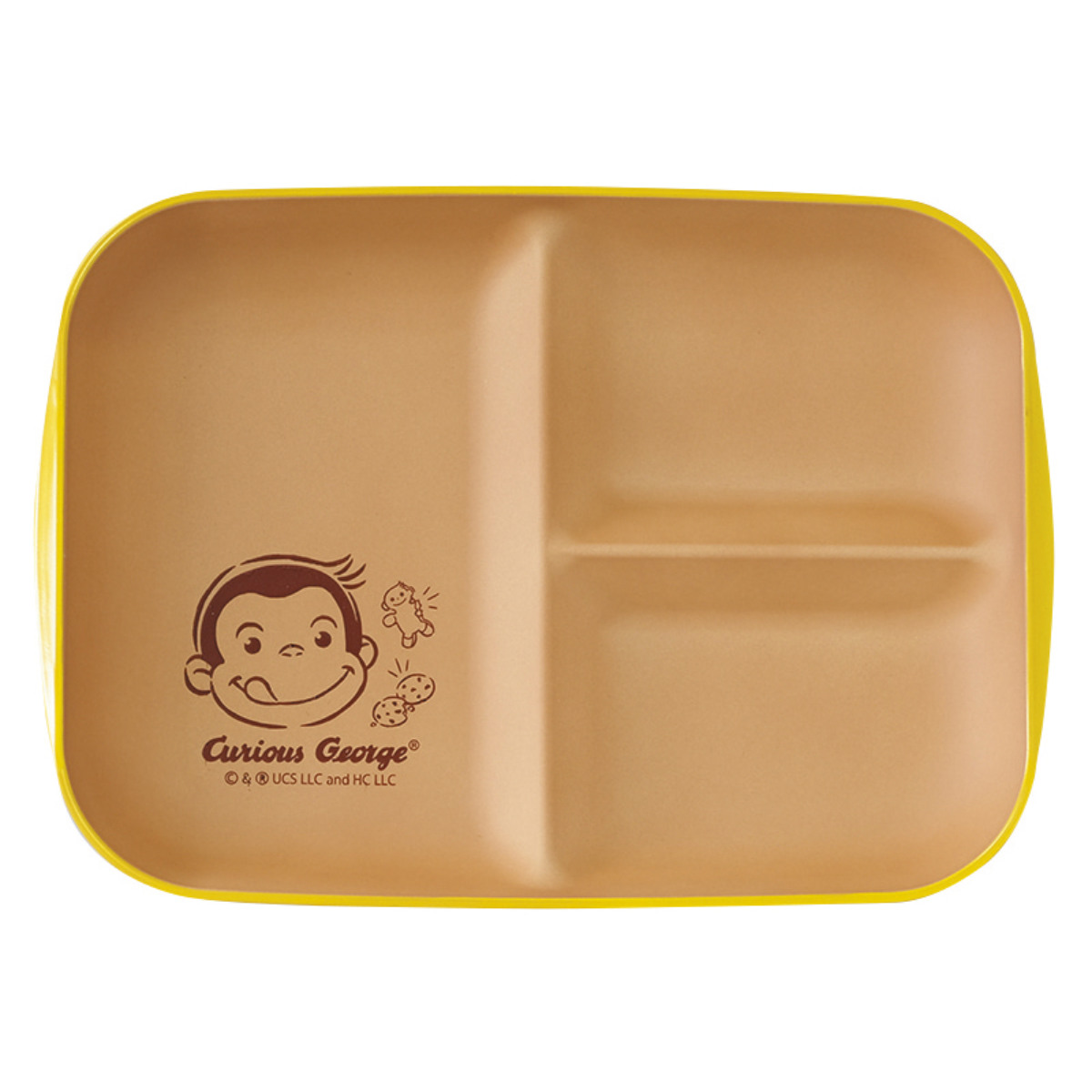 人気のキャラクター「おさるのジョージ」がデザインされたランチプレートです。仕切り付きなので、ワンプレートでバランスよく食事を楽しめます。食べ終わると、ジョージの笑顔が現れる楽しいデザインです。