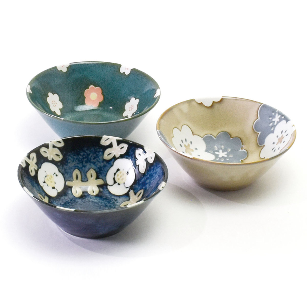サラダや煮物、鍋の取り分け用などにぴったりなサイズのボウルの3個セットです。個性的な花柄のデザインが食卓に華やかさを添えてくれます。3個セットになっているのでご家族で色違いで使ったり、来客用の食器としても重宝します。