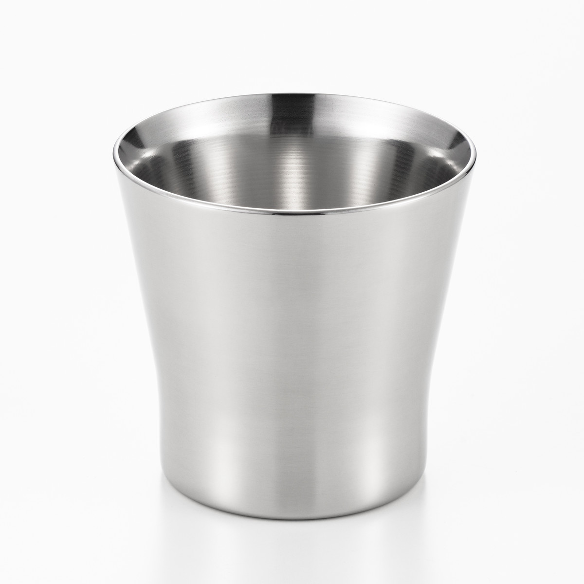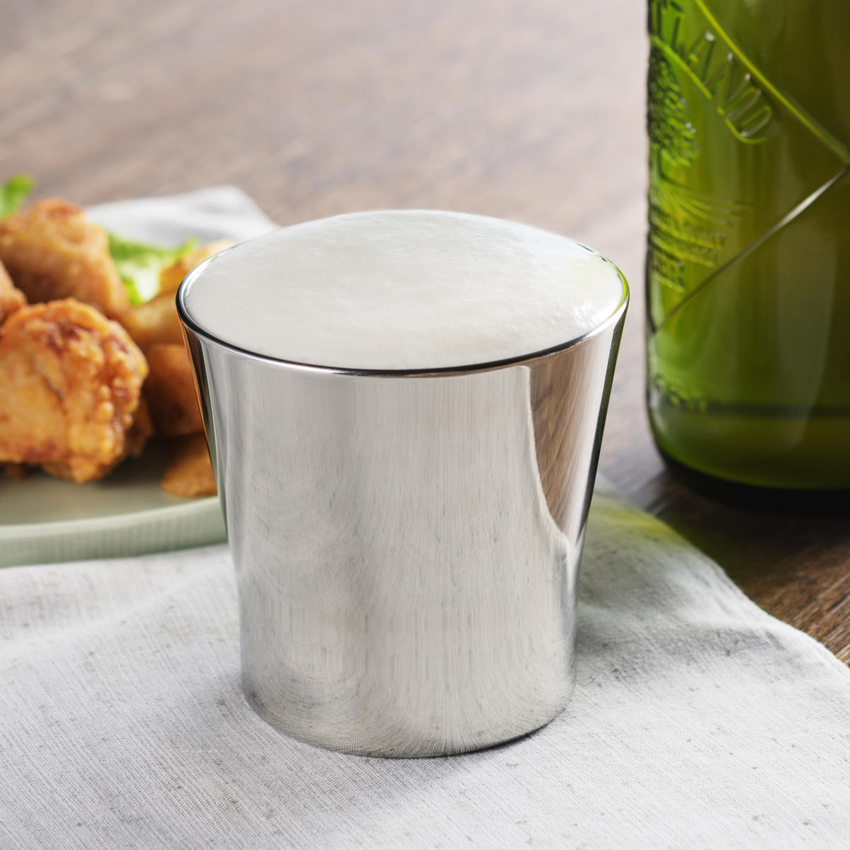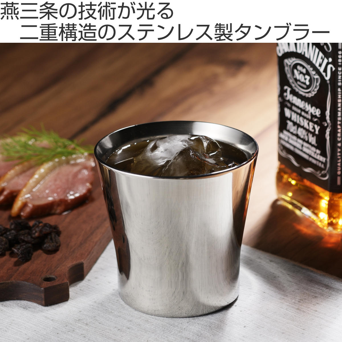 新潟県燕市の高度な金属加工技術で作られたステンレス製タンブラー。二重構造が飲み物の温度をしっかりキープし、冷たいビールは冷たく、温かい飲み物は温かいまま楽しめます。厚みのあるやわらかな口当たりで、ビールや焼酎、冷茶など幅広いドリンクに対応しています。日常使いはもちろん、贈り物にも最適です。