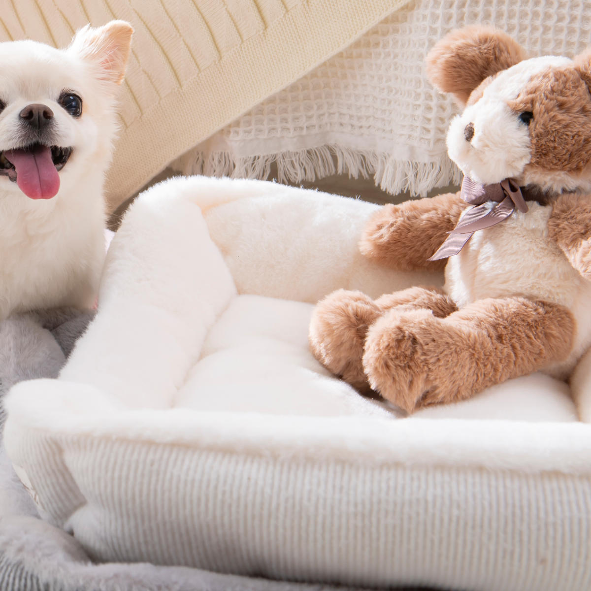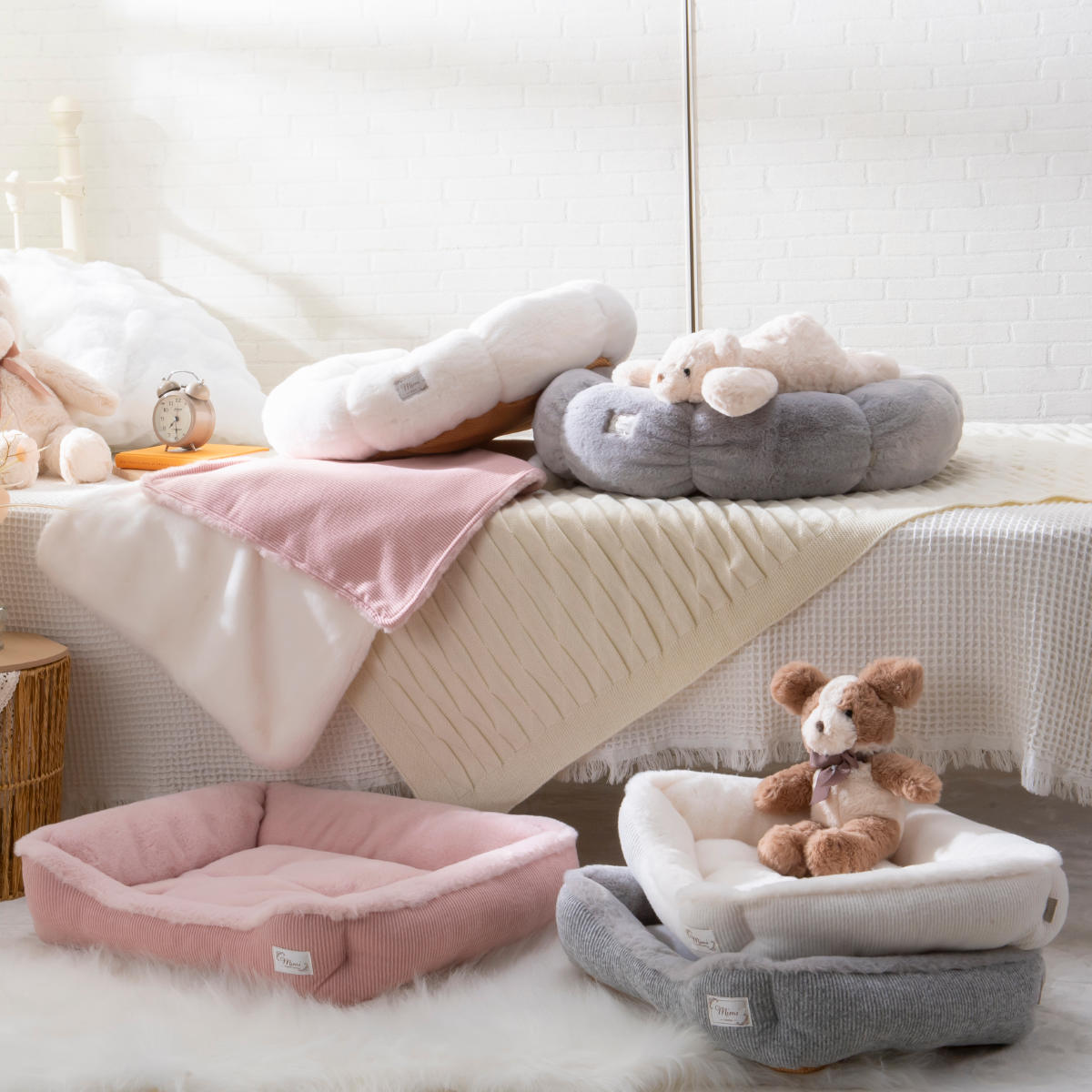 ●優しいペールカラーにふわりとした触れ心地のペットベッドです。