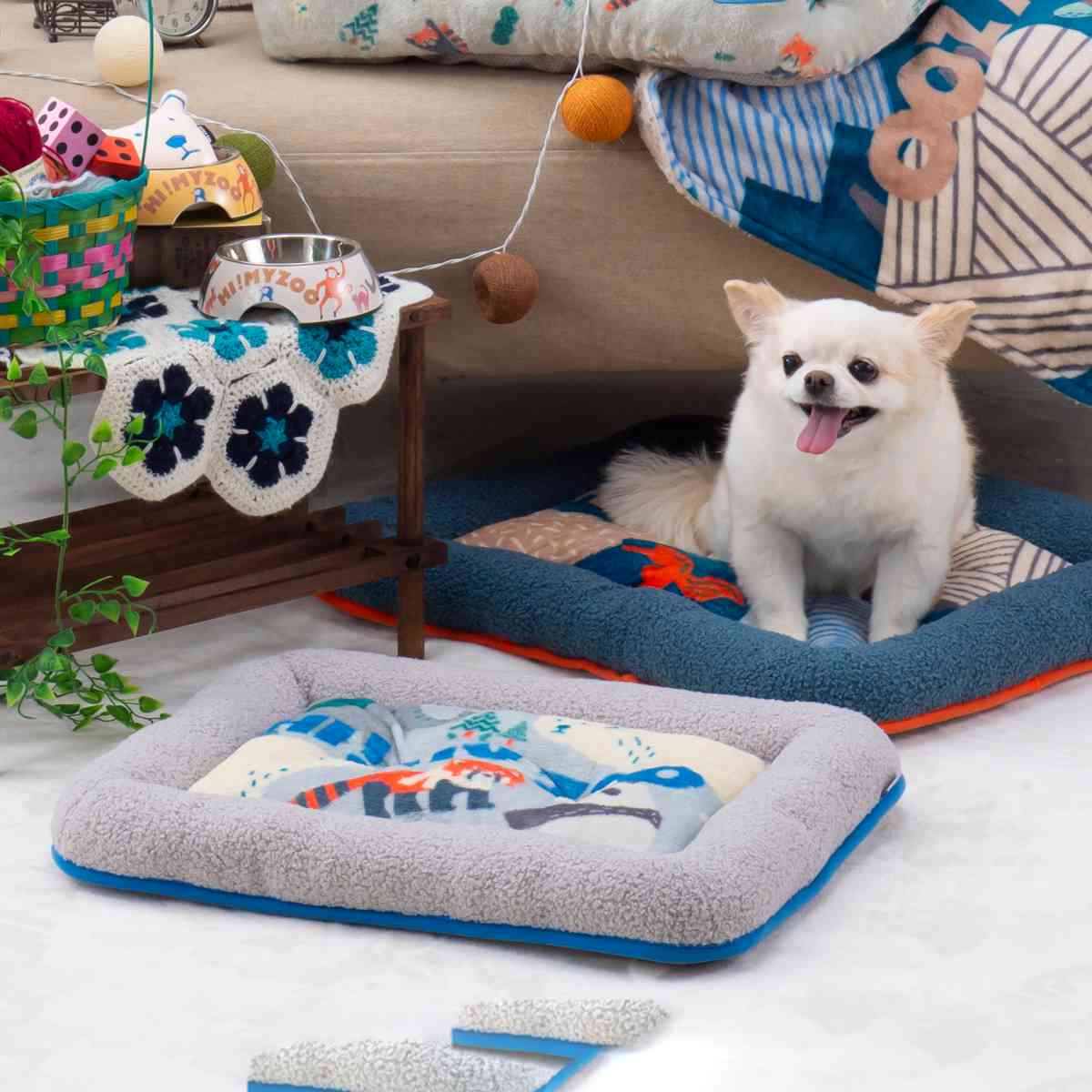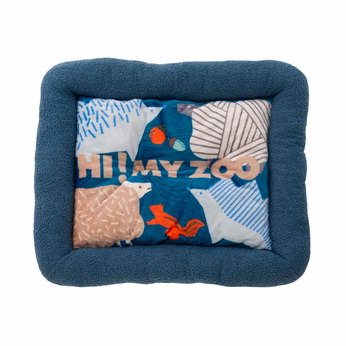 森の仲間を描いた穏やかなデザインが、日々の暮らしにそっと寄り添います。自然の色合いを思わせる落ち着いたトーンとやさしい素材感で、季節を問わずお使いいただけます。見た目にもあたたかく、ネコちゃんや小型犬のリラックスタイムを心地よく演出します。