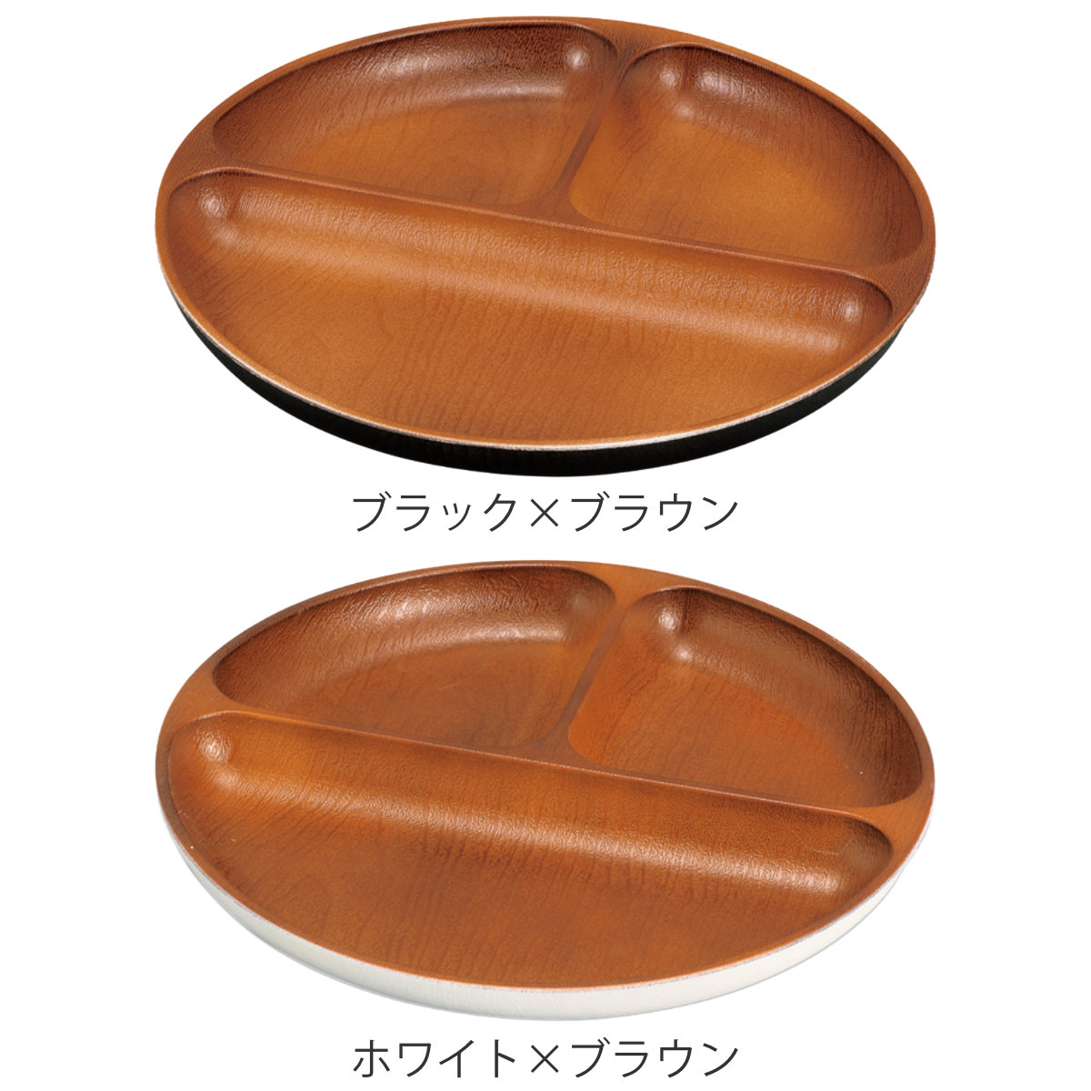 主菜・副菜・デザートなどを1枚に美しく盛りつけられる、便利な仕切り皿です。軽くて丈夫なので扱いやすく、日常使いにもおもてなしにも最適です。和洋どちらの料理にも馴染むナチュラルな木目デザインが、温かみのある優しい印象を与えます。