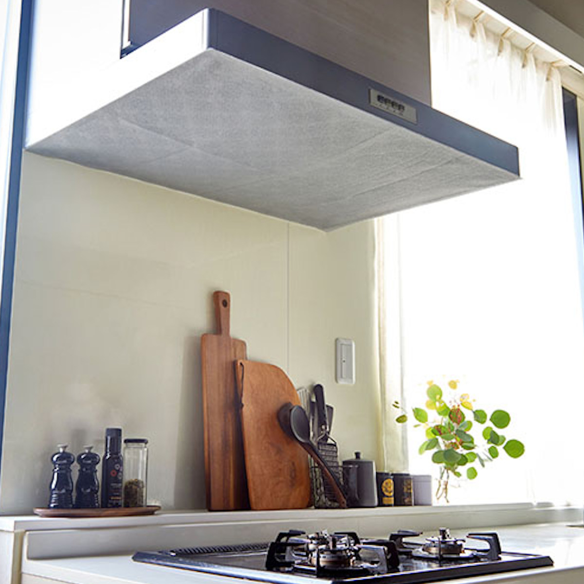 細かな繊維が重なり合った不織布が、調理中に発生する油煙・ホコリを効率よく吸着します。整流板の表面はもちろん、内部への汚れの侵入を防ぐことで、レンジフードの寿命にも優しく、日々のお手入れの負担を大きく軽減します。