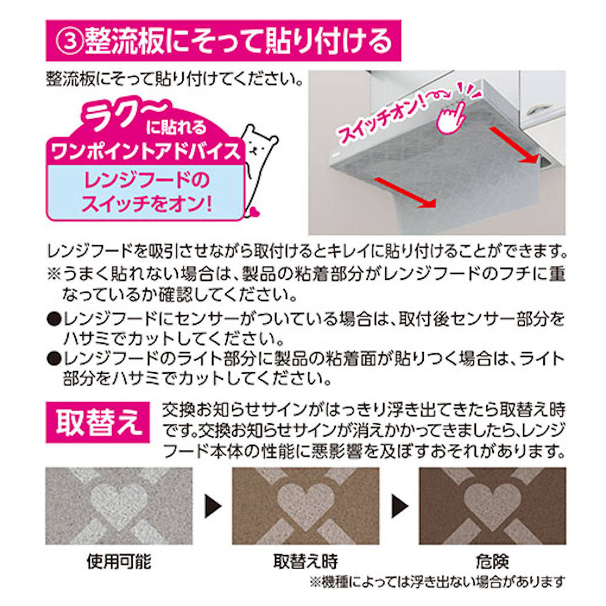 粘着力はしっかりしているのに、剥がす時はベタつきが残りにくい仕様です。定期的な交換が必要なアイテムだからこそ、取り外しのしやすさにも配慮しています。作業時間も短縮できて、毎日忙しいキッチンでも続けやすいフィルターです。