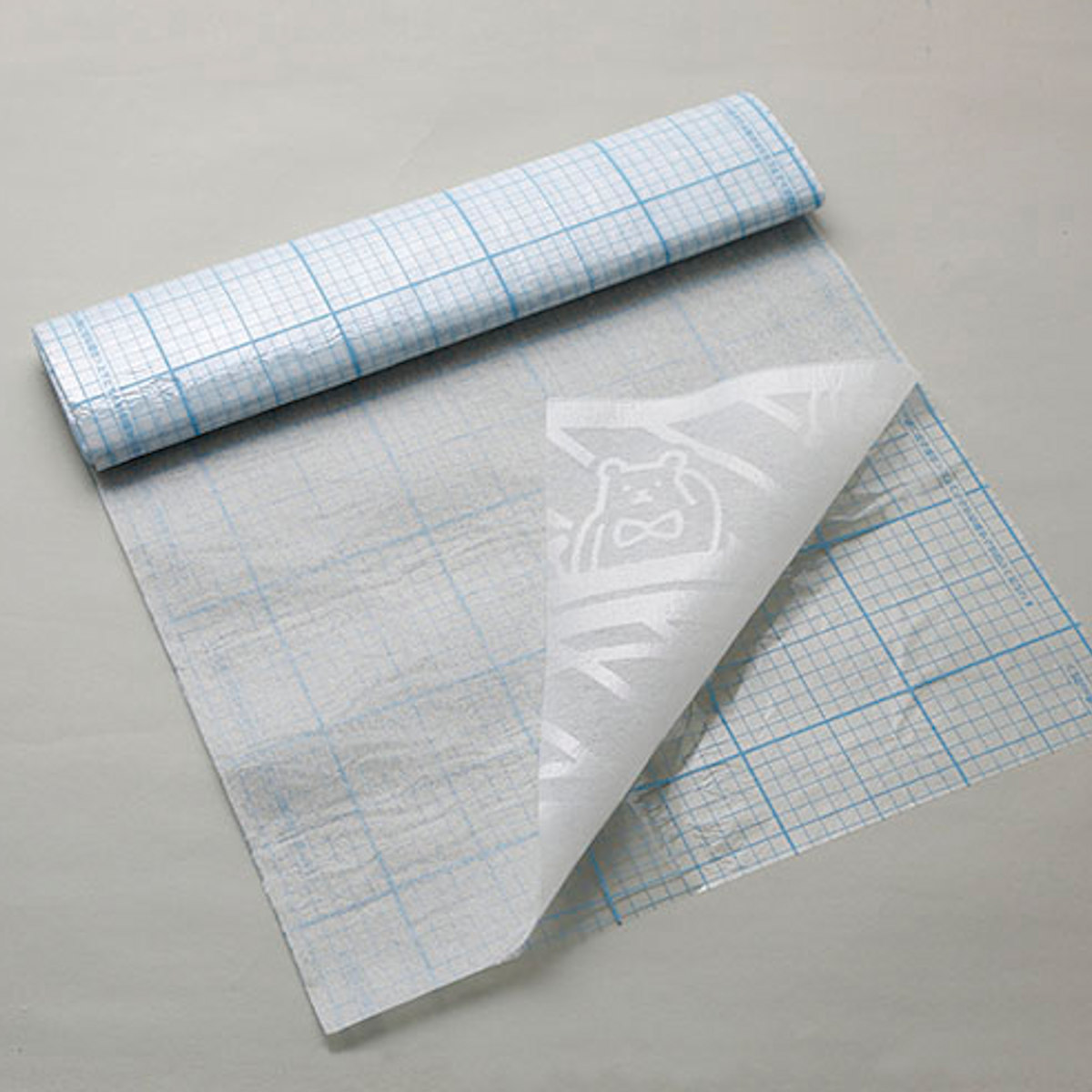 ●カットの目安と通気の妨げにならない粘着デザインです。