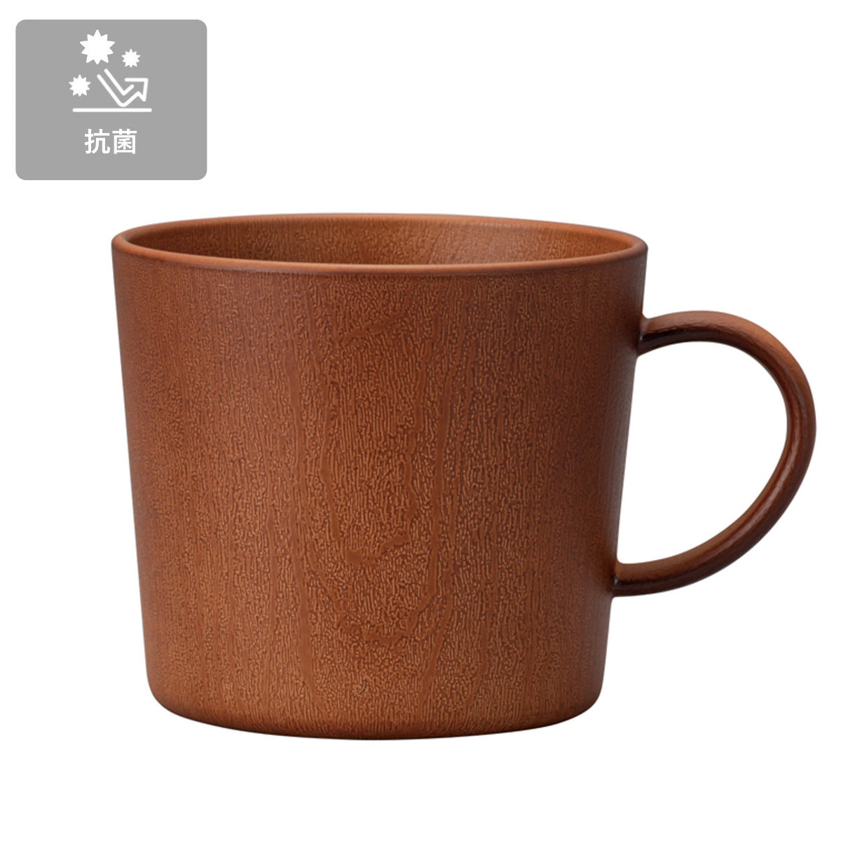 樹脂製で軽く、割れにくい山中塗の木目調マグカップです。抗菌加工が施されているので、安心してお使いいただけます。コーヒーやスープなど温冷問わず幅広いドリンクにお使いいただけます。