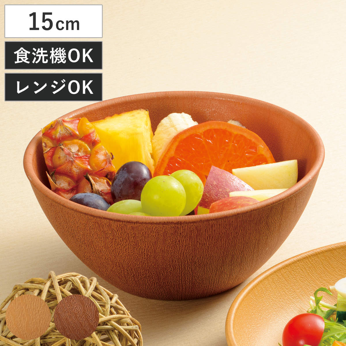 ナチュラルな木目の質感に、安心して使える抗菌機能をプラスした抗菌木目食器シリーズ。スープカップやマグカップ、ボウルやプレートなど用途に合わせて選べる豊富なラインナップが揃っています。普段使いはもちろん、パーティーやアウトドアシーンでも活躍します。