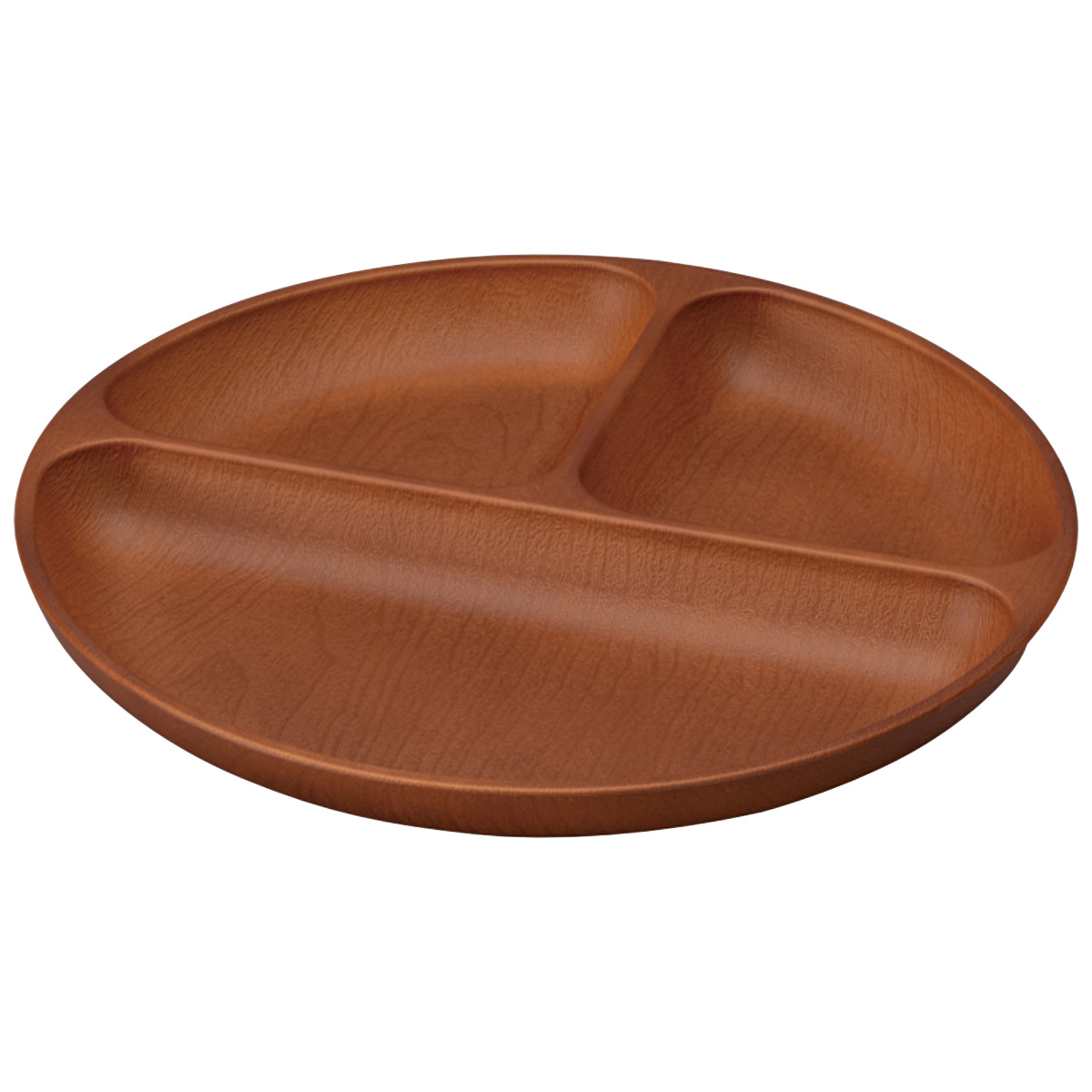 ●温かみのある木の風合いが感じられる木目調の丸仕切プレートです。