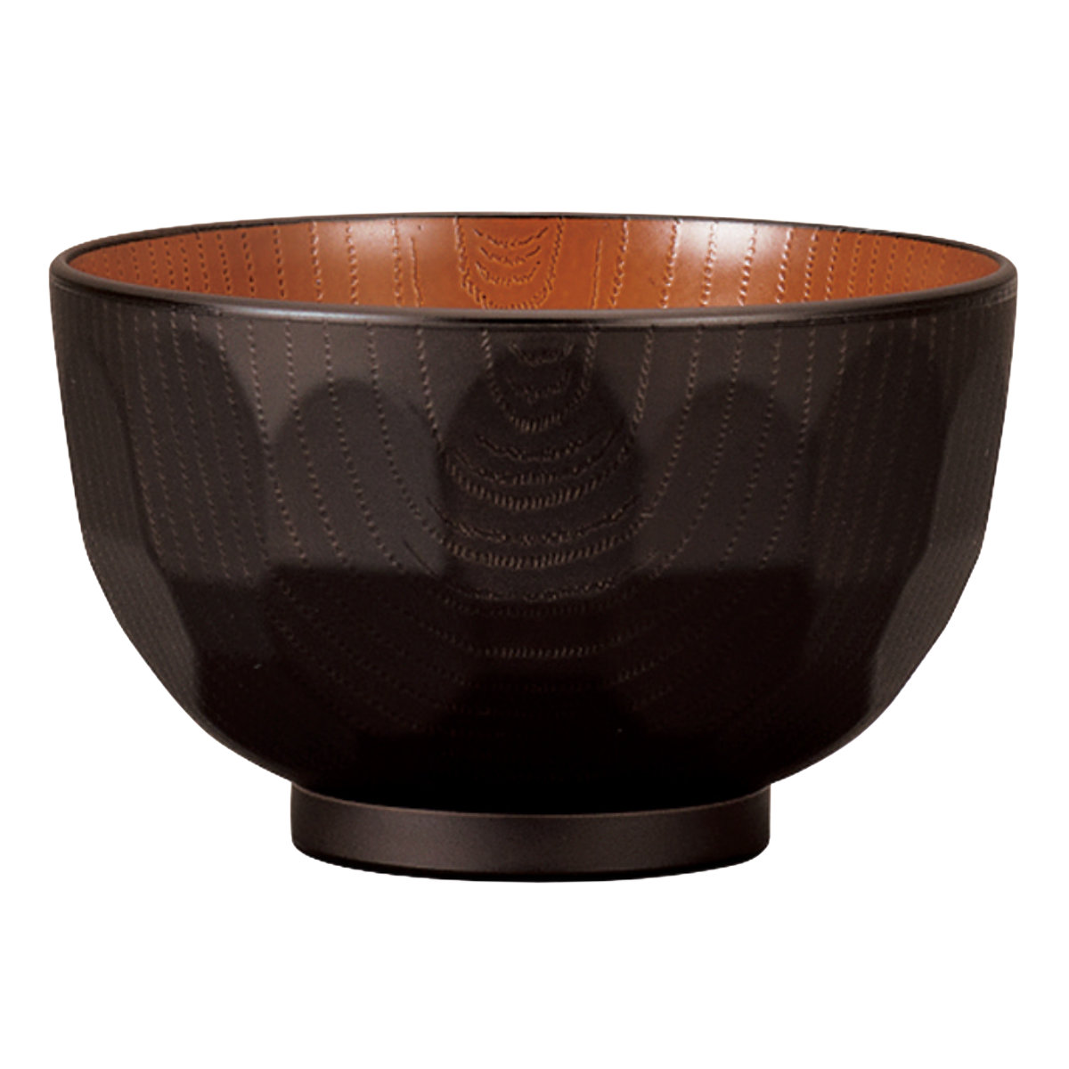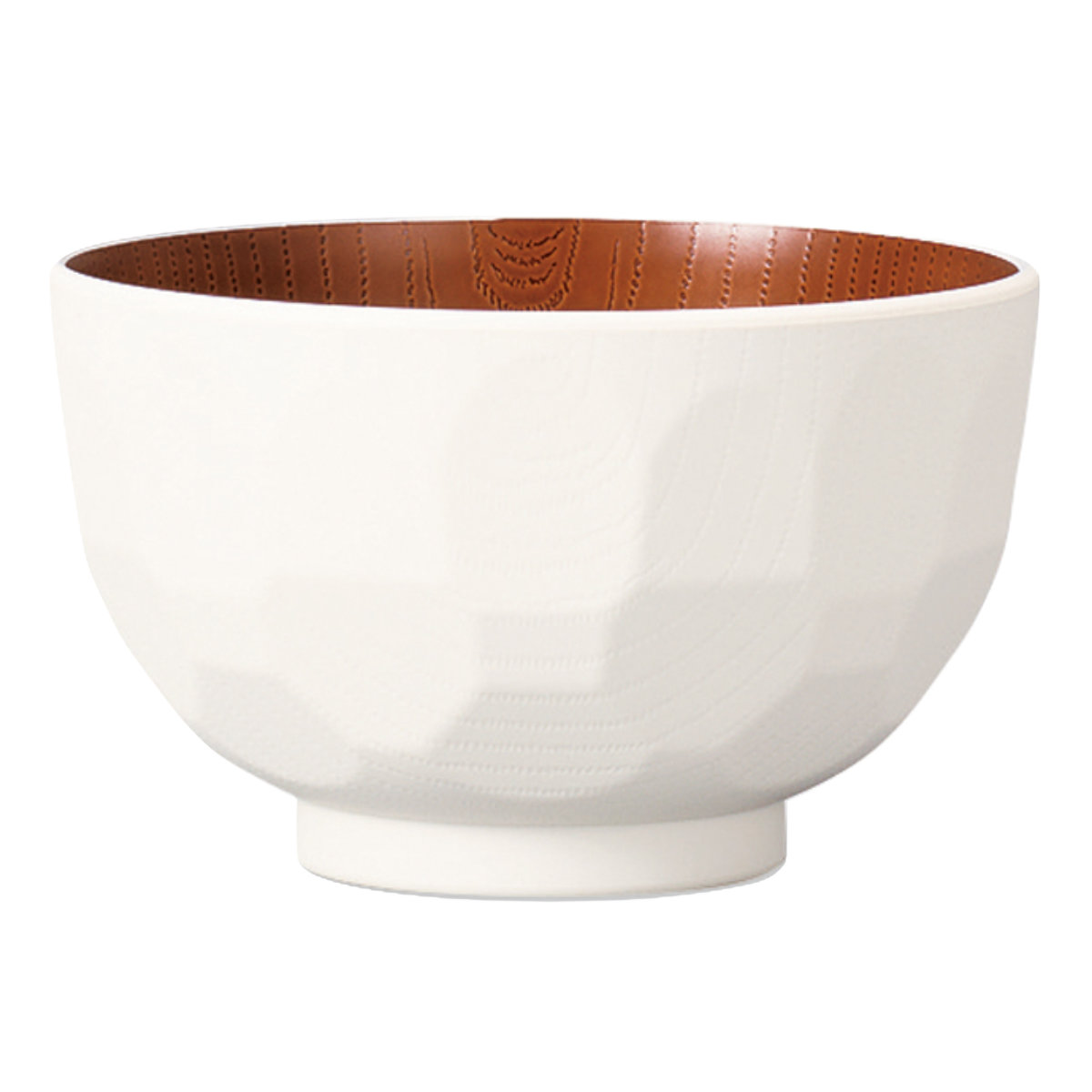六角形を思わせる面取りの形が手に馴染みお子さまにも持ちやすいです。朝の味噌汁や昼のスープ、夜の軽めの一品など、毎日の食卓で幅広く活躍します。和洋どちらの料理にも馴染むナチュラルな木目デザインが、温かみのある優しい印象を与えます。