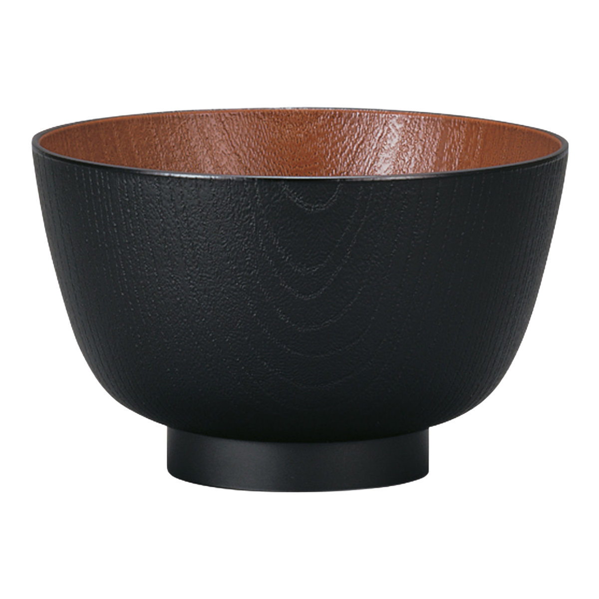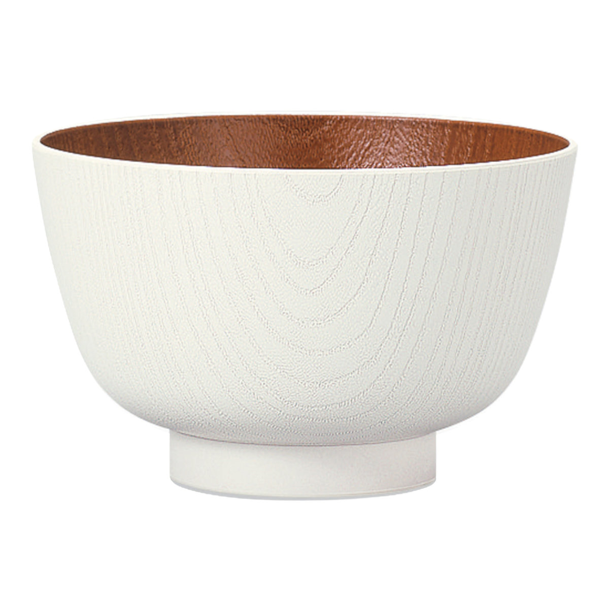 丸みを帯びたオーソドックスな和風椀型の汁椀です。普段使いに最適な、軽くて便利な木製風食器のため、毎日活躍します。和洋どちらの料理にも馴染むナチュラルな木目デザインが、温かみのある優しい印象を与えます。