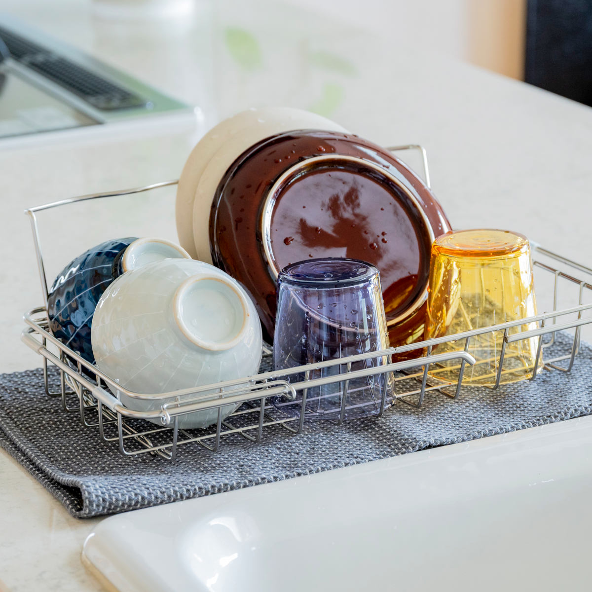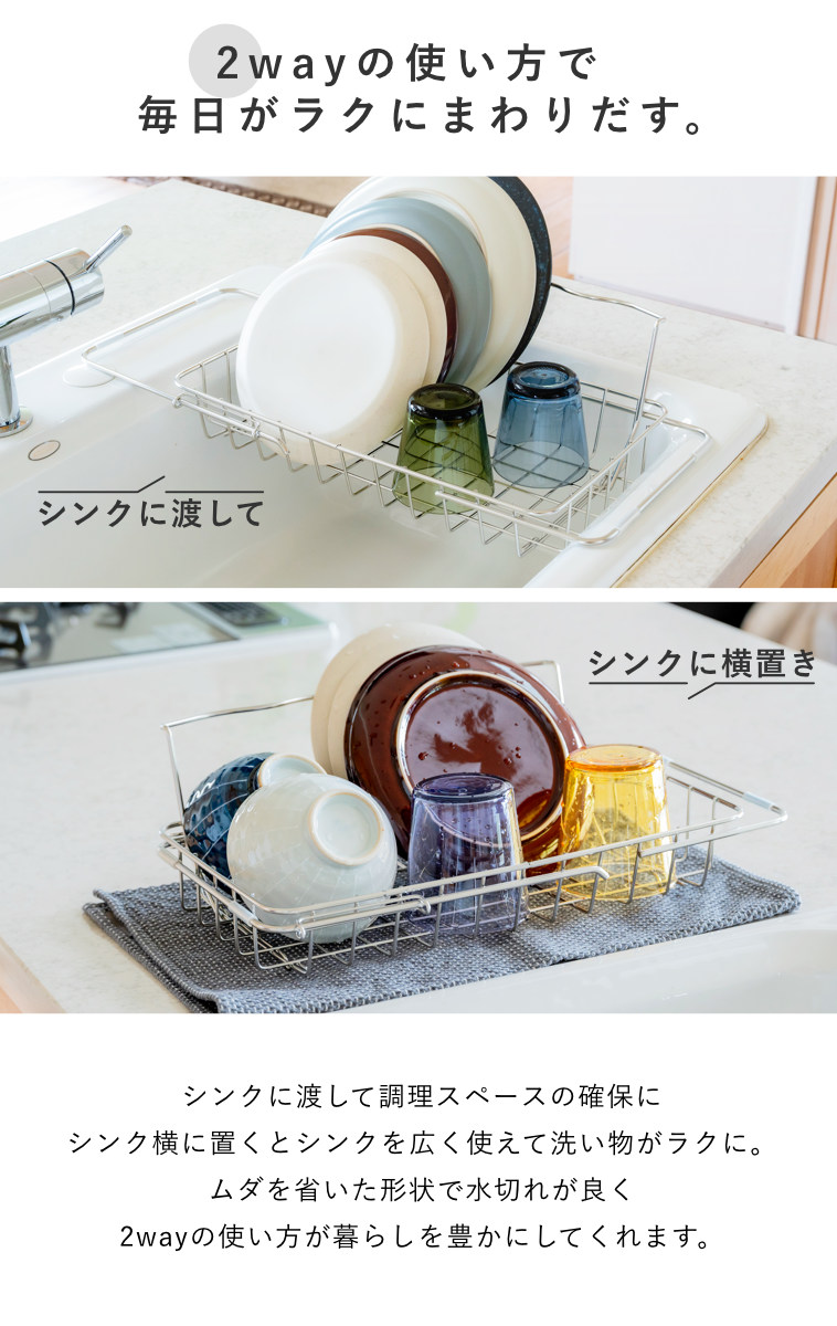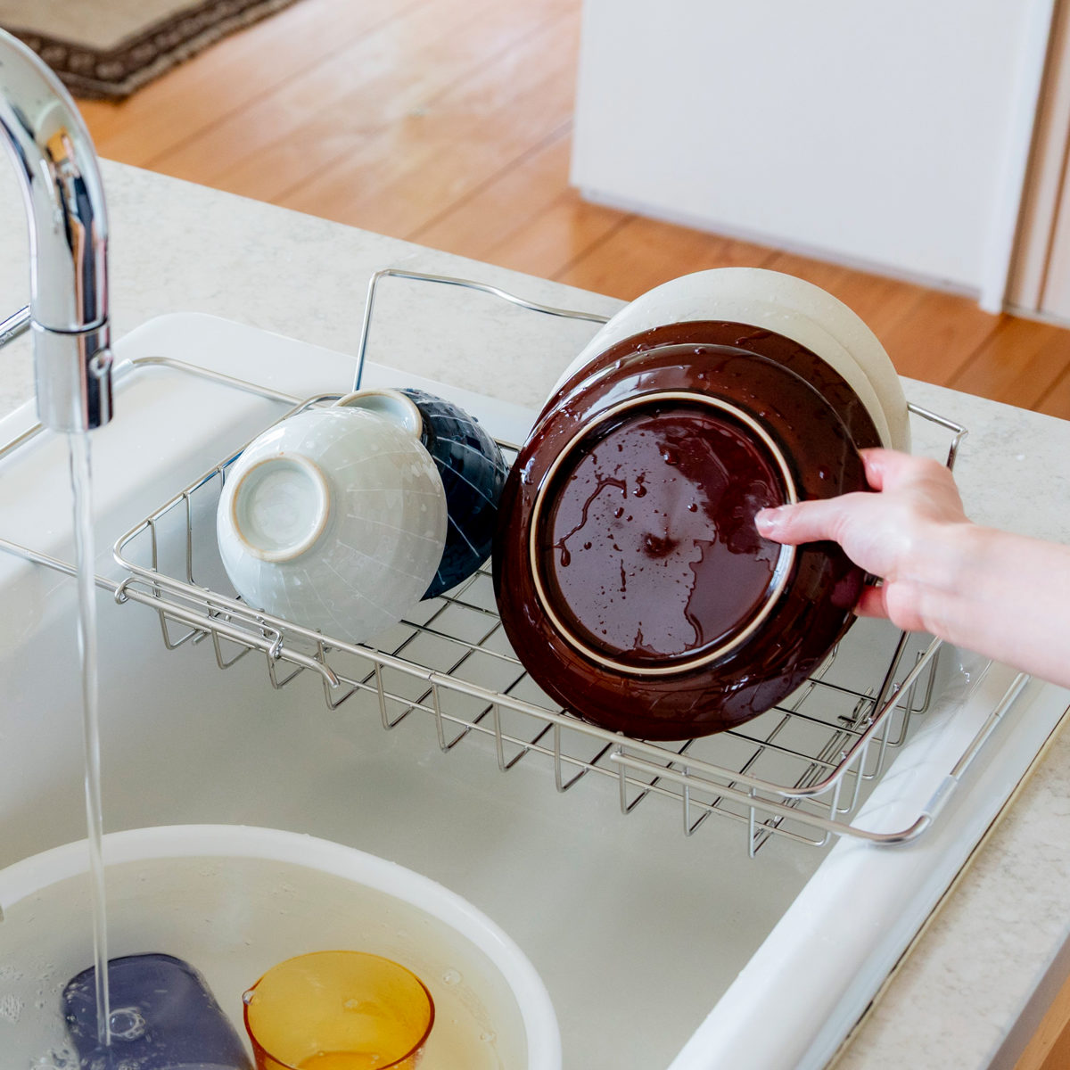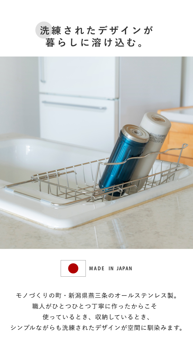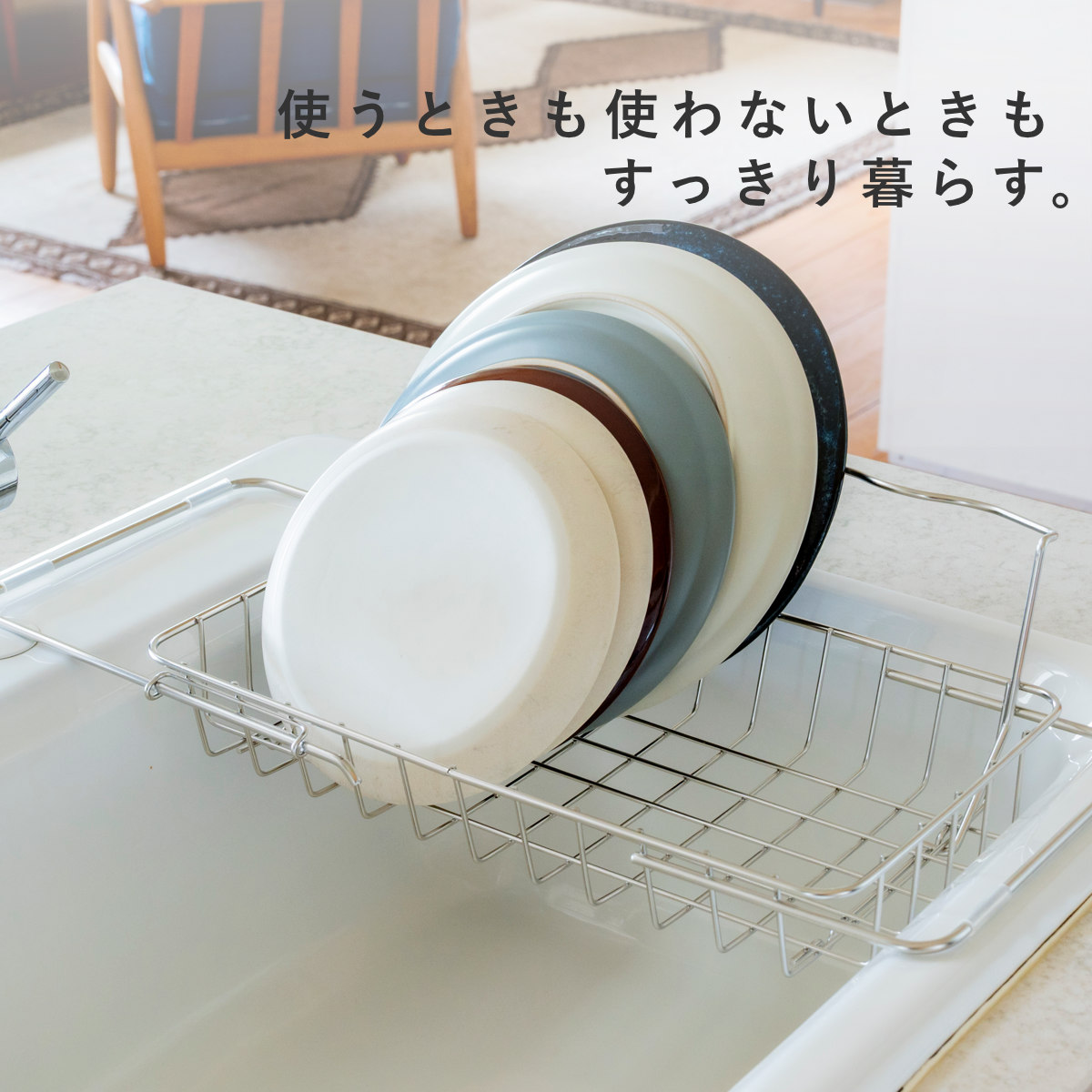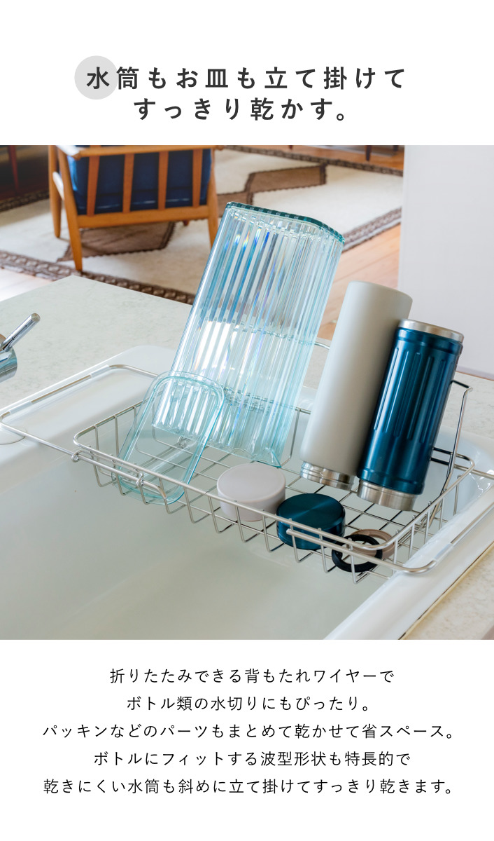 水筒もお皿も立て掛けて乾かせるシンク渡し水切りかご