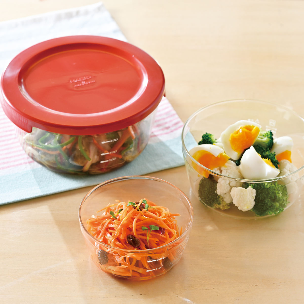 色と匂いがつきにくい耐熱ガラス製保存容器