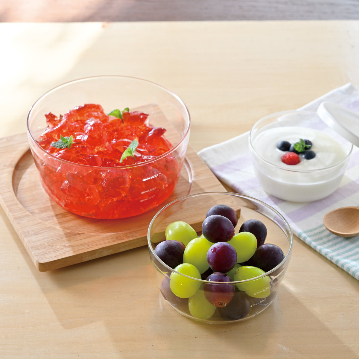 シンプルなデザインのガラス容器は調理してそのまま器として食卓へ出すことができます。