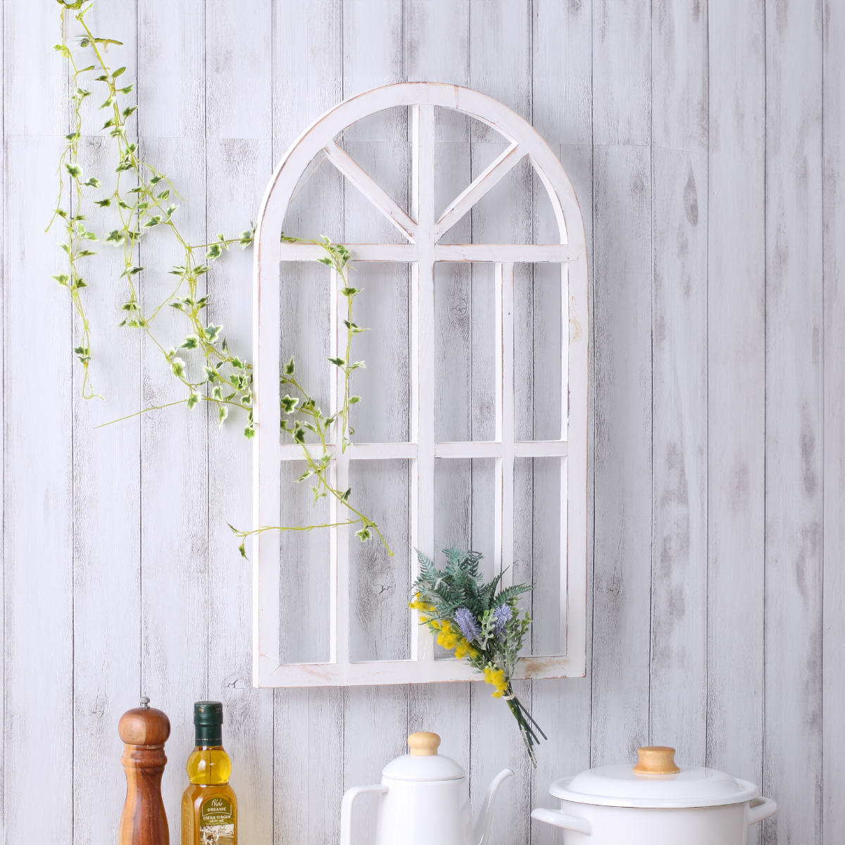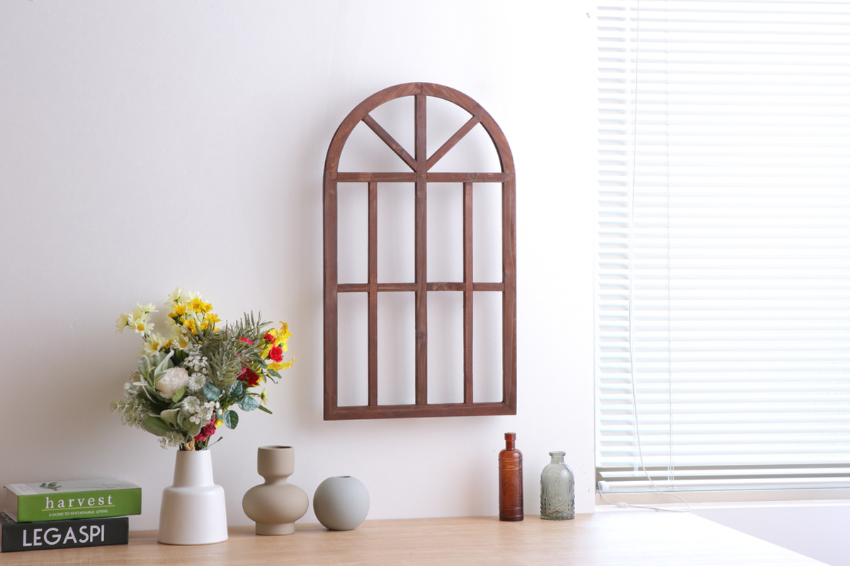 一つ一つのデザインにレトロな雰囲気と木の温もりが込められた、ウィンドウフレームです。アンティークな風合いが、ナチュラルインテリアやアンティーク調のお部屋にぴったり。棚やカウンターに立て掛けたり、壁掛けやガーデンディスプレイにもおすすめです。