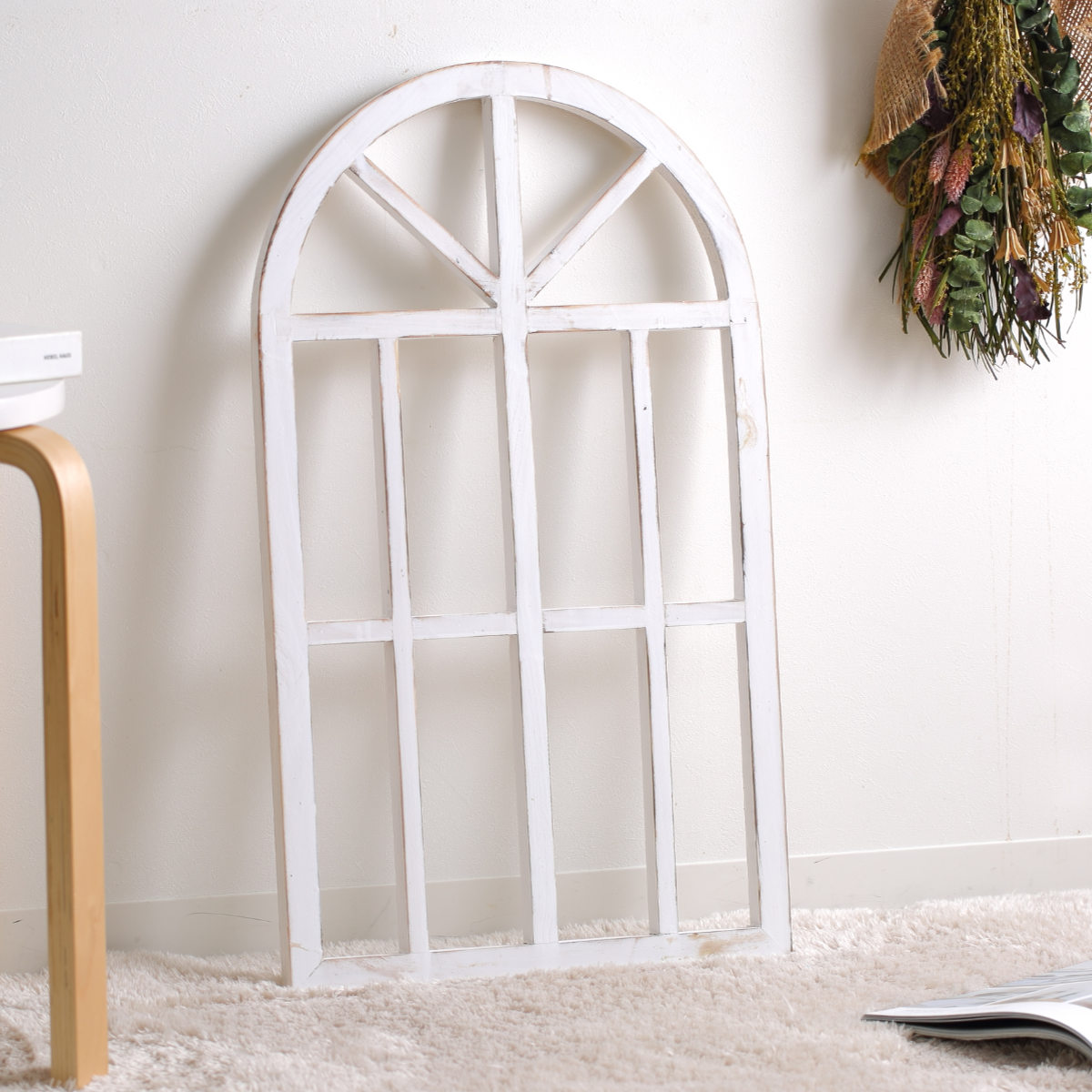 お部屋に立て掛けるだけで、ナチュラルで温かみのある雰囲気に。フォトフレームや花瓶、グリーンなどを一緒に飾ると、統一感が出て雰囲気のある空間になります。
