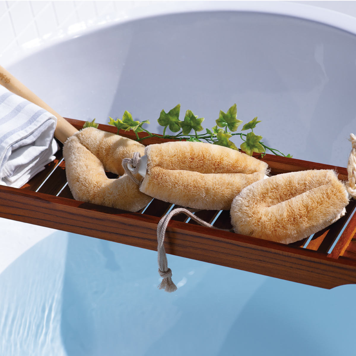 乾いた状態で肌をなでるようにブラッシングする「ドライブラッシング」にもお使いいただけます。血行を促し、古い角質をやさしく取り除くことで、すべすべとしたなめらかな肌へ導きます。お風呂での使用はもちろん、入浴前のセルフケアとしても活躍します。