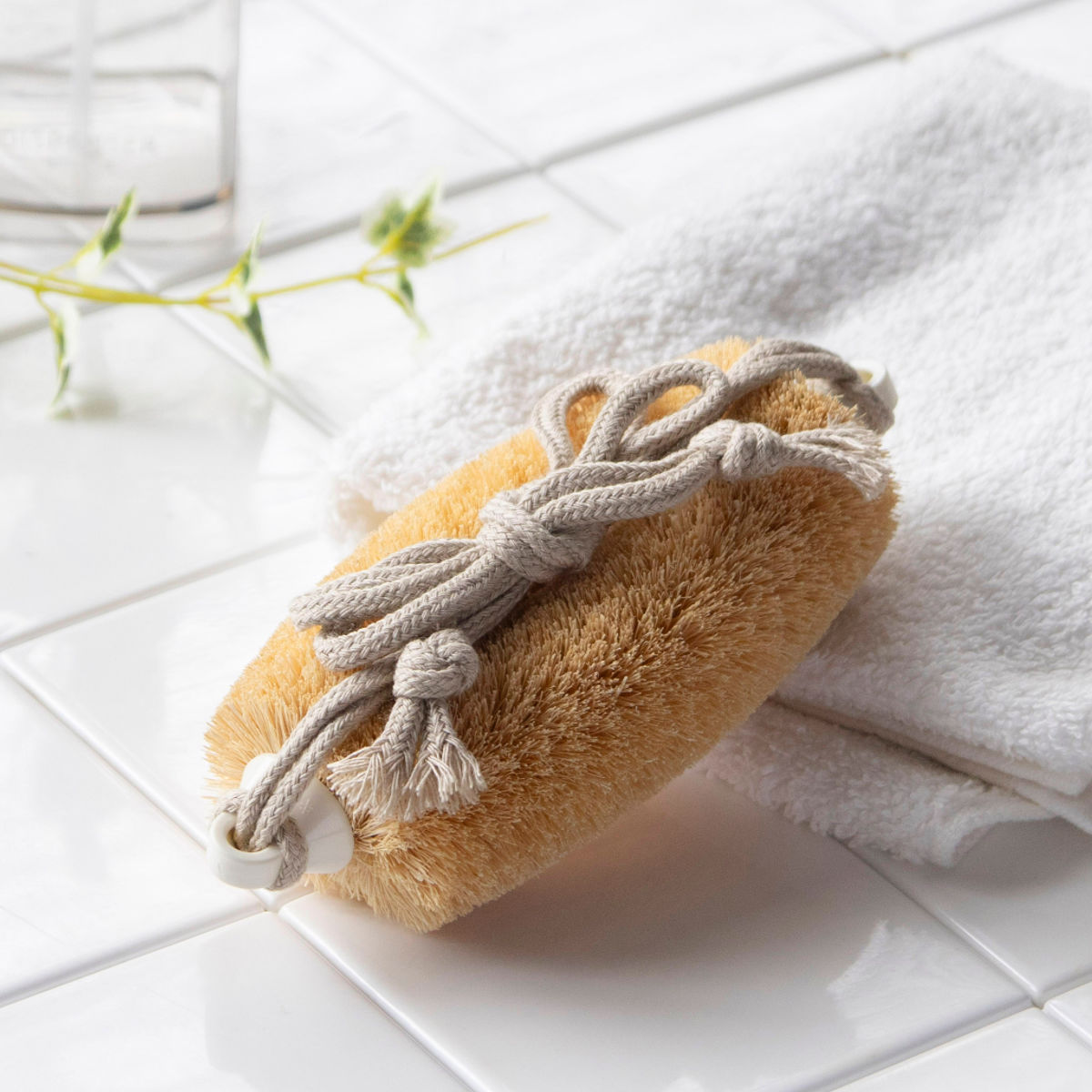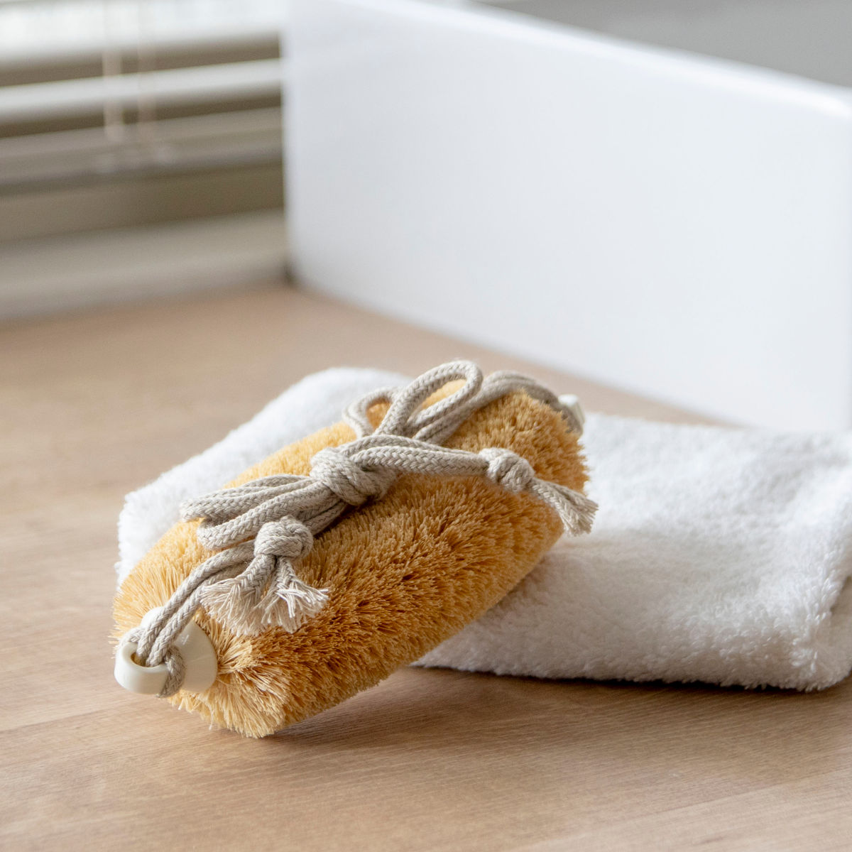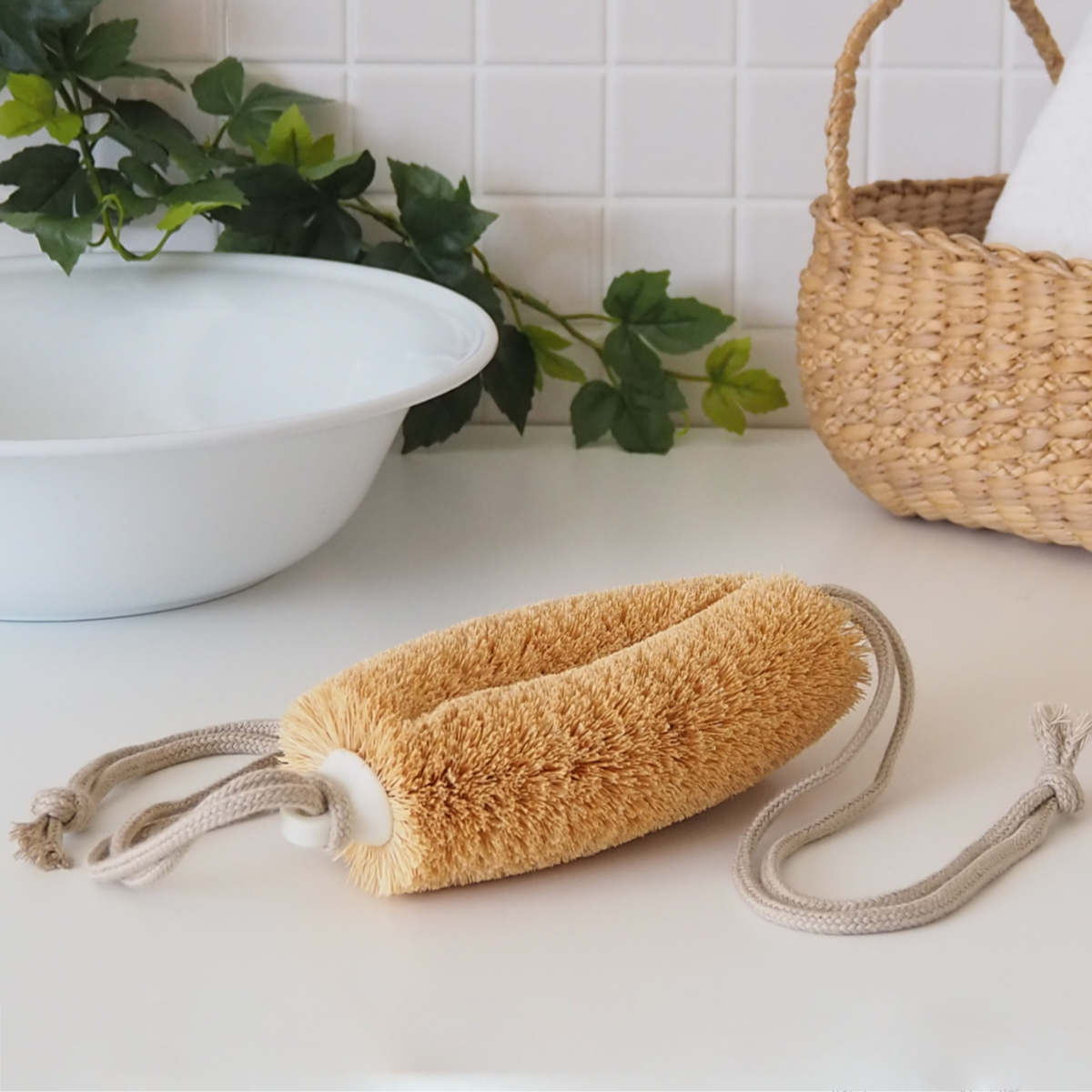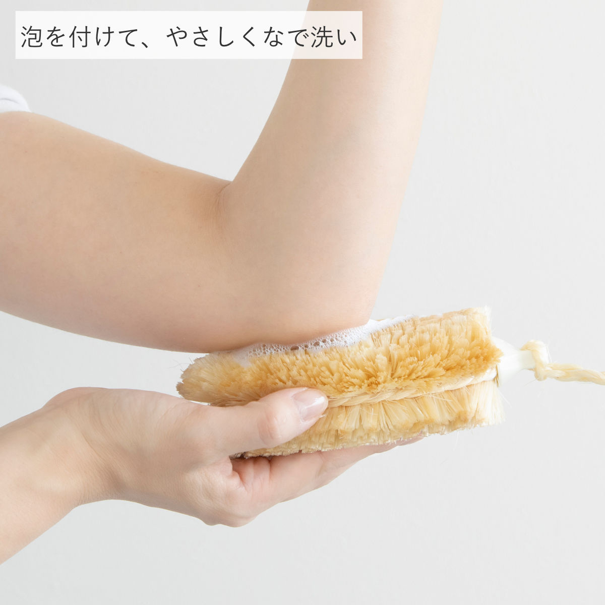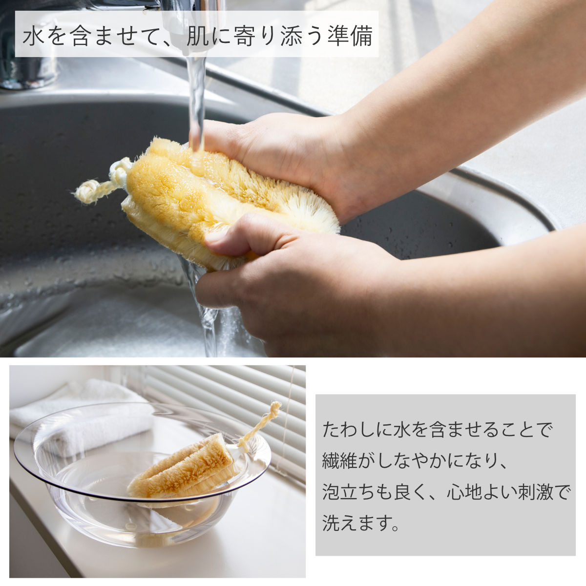 泡立てたボディソープや石鹸をたわしに付けて身体をこすって洗います。たわしの繊維がもたらす適度な刺激がボディケア効果を高めます。