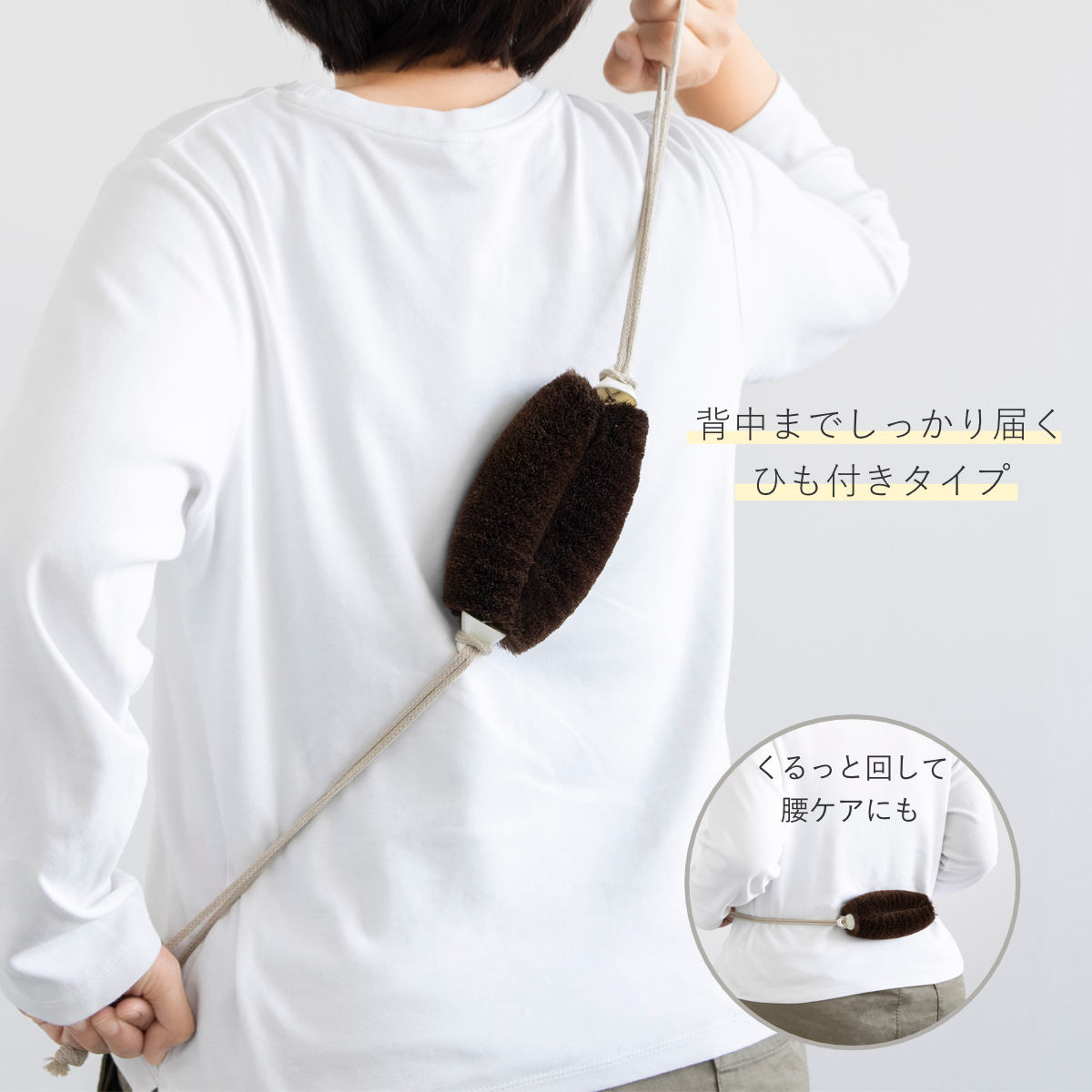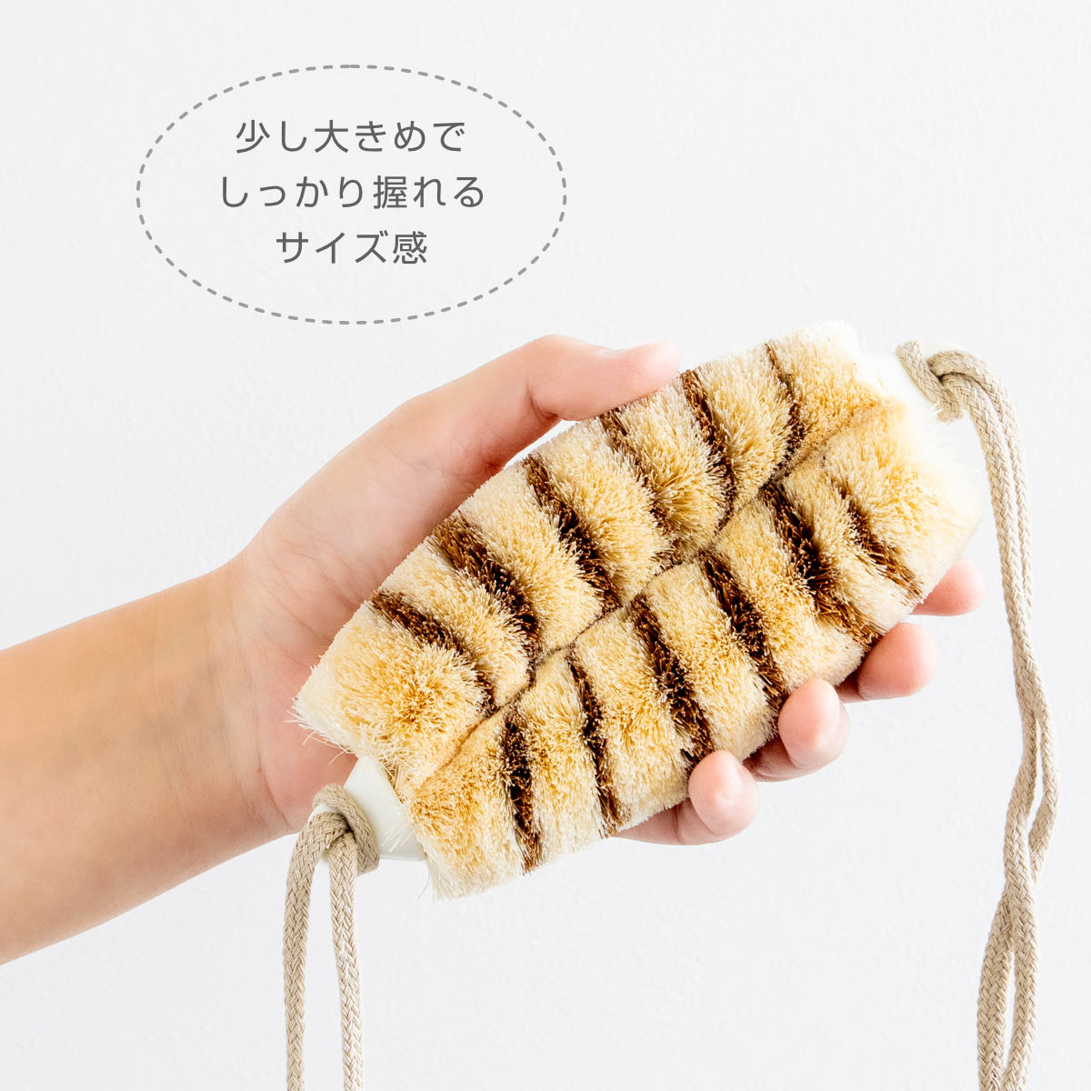 やや大きめサイズのたわしの両端にひもが付いているので、背中もラクに洗えます。手が届きにくい方や、しっかり背中をケアしたい方におすすめのタイプです。