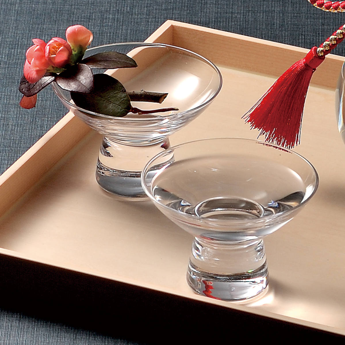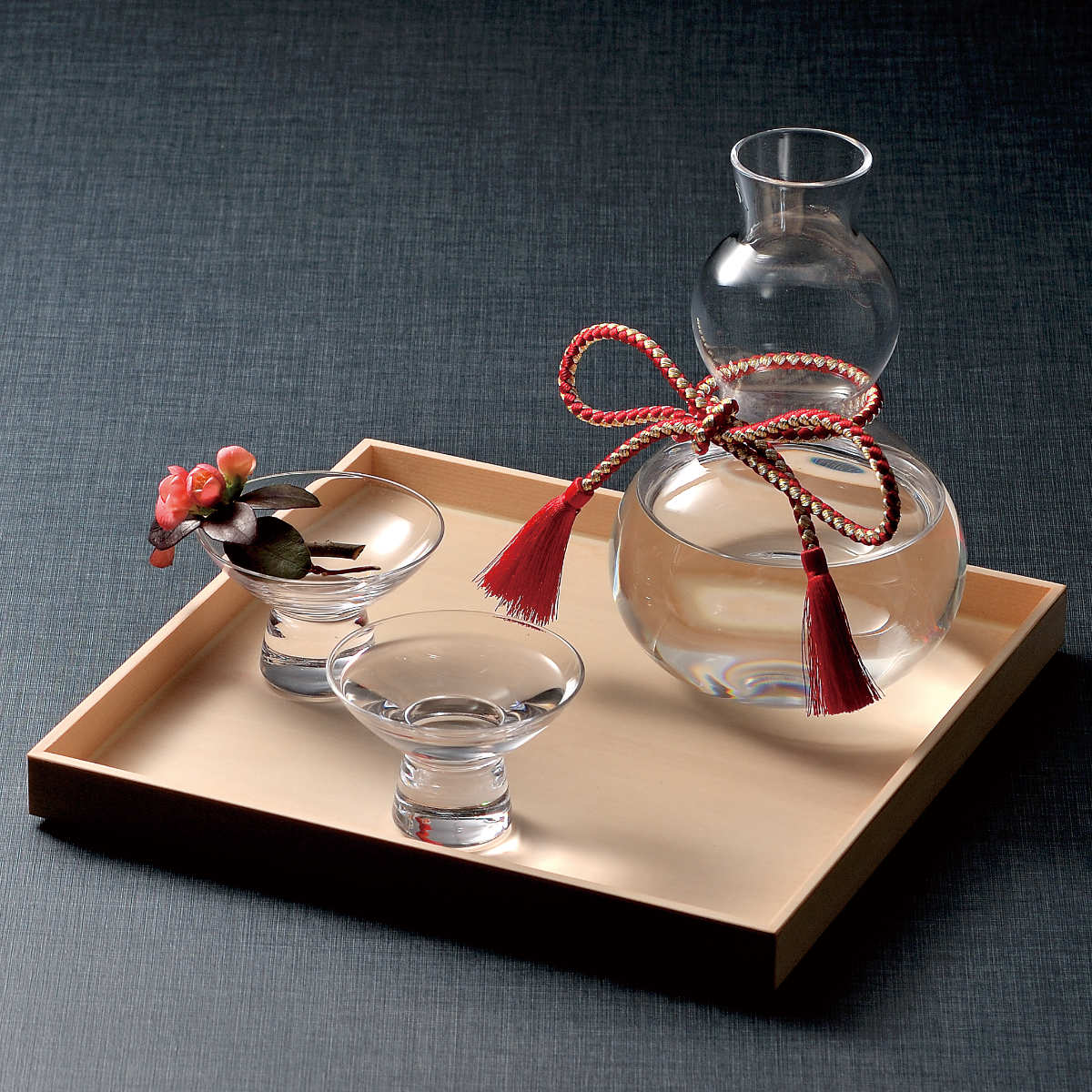 透明度が高い東京製吹きガラスのボトル550mlと盃50ml×2個の3点セットです。ボトルはひょうたんのような形状です。落ち着いた雰囲気で晩酌を楽しみたい方や日本酒をゆっくり味わいたい方におすすめです。