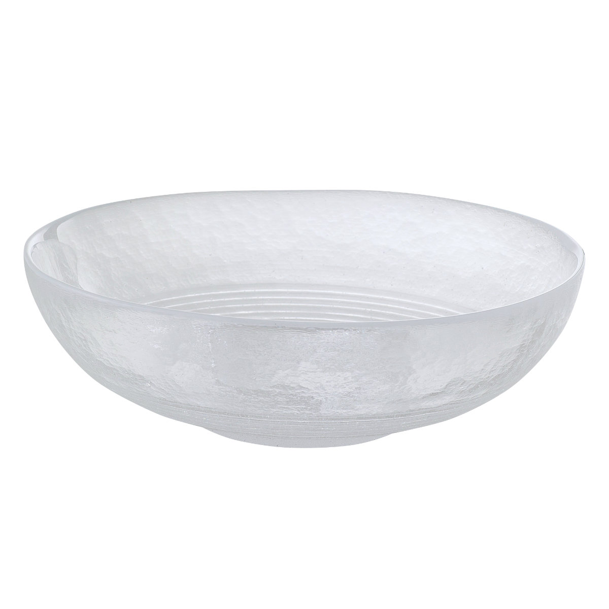 フロスト加工のない透明ガラスに、白い粒が舞うように散りばめられた表情が美しい特大鉢です。厚みのあるガラスが上品な存在感を放ち、深さがあるので汁気の多い料理にも使いやすいサイズです。食卓の中央に置くだけで、華やかさを添えてくれます。
