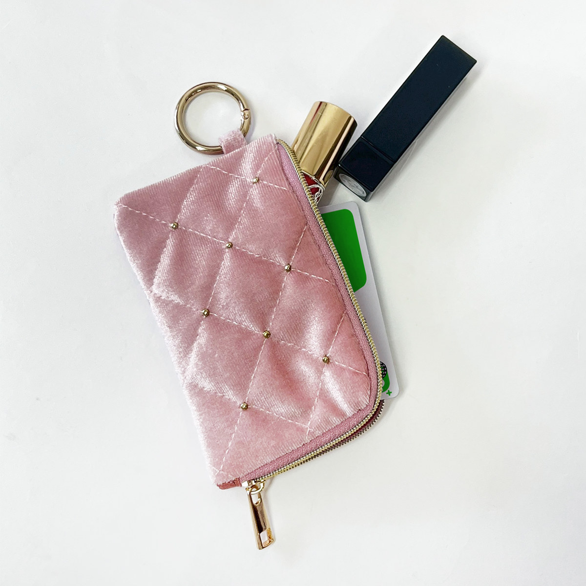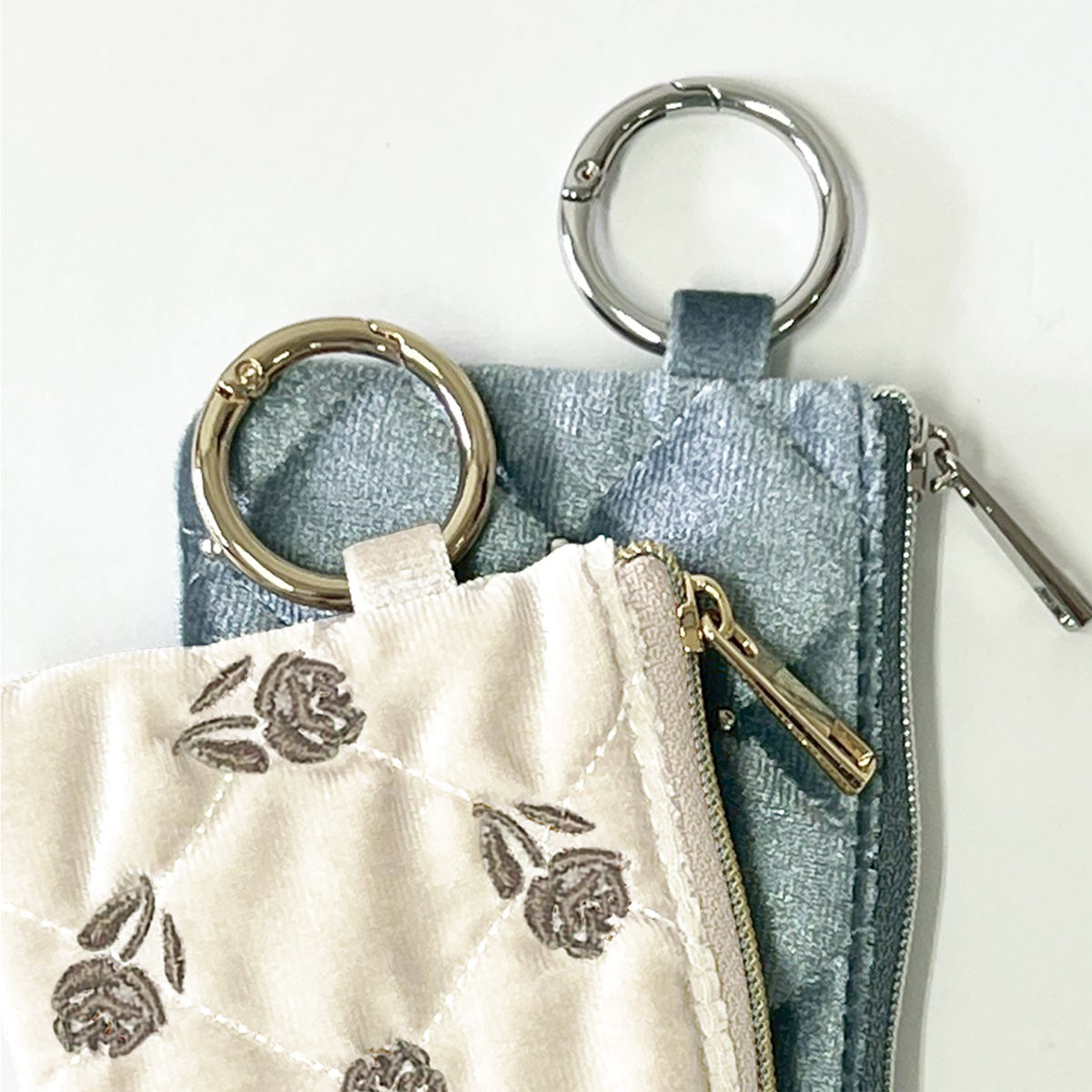 ベロア生地が可愛いカラビナ付きコンパクトポーチ