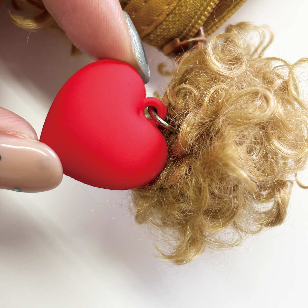 しっぽをイメージしたふわふわ素材に、ぷっくりハートのチャームがポイント。持っているだけで気分が上がる、おでかけのおともに、ギフトにもぴったりのアイテムです。